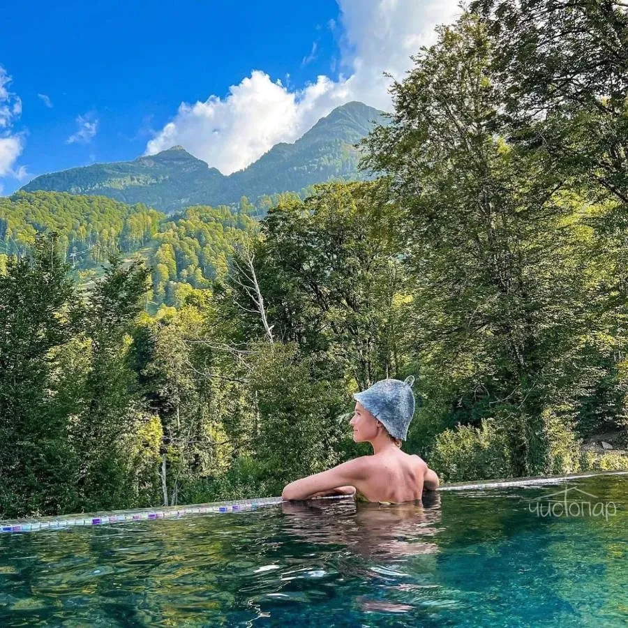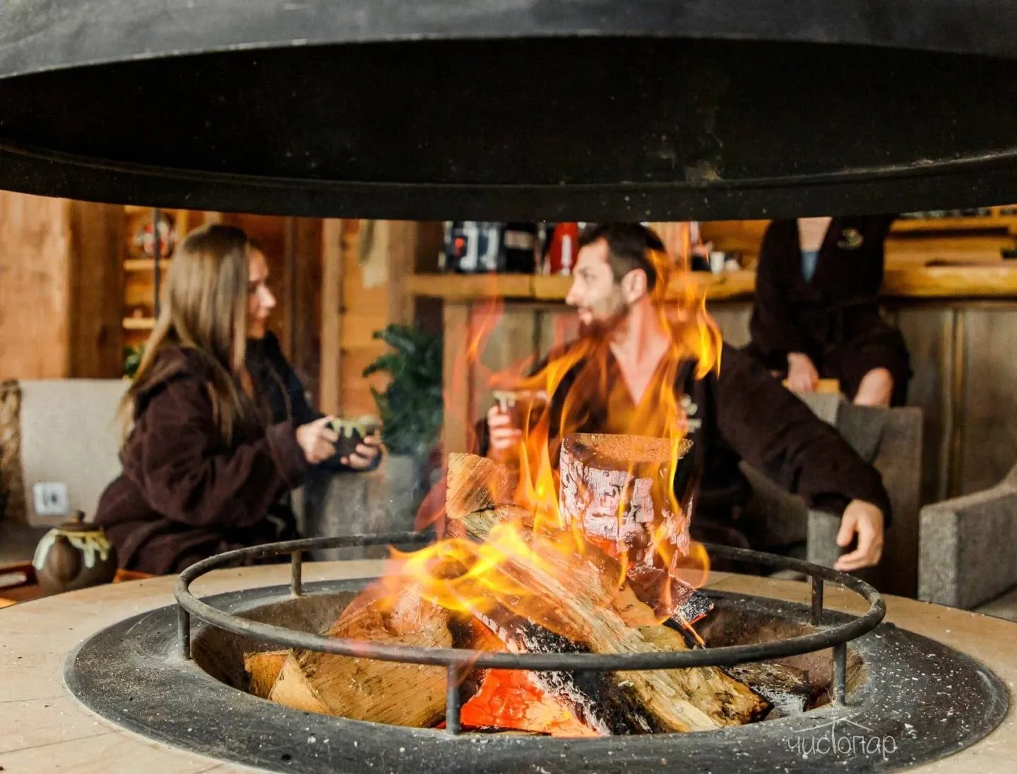 К услугам гостей Большой и Малый банные комплексы. На территории Большого банного комплекса находятся альпийская парная, баня-мазанка и хамам, холодная купель, теплое джакузи, открытый бассейн и летняя терраса с шезлонгами для загара. Уединиться небольшой компанией можно в пространстве Малого банного комплекса с собственной парной из сибирского кедра, комнатой для чаепития, горячей и холодной купелями. Заказать прохладительные и согревающие напитки можно в собственном баре. В горных банях можно расслабиться на спа-процедурах, включающих парения и массажные сеансы.