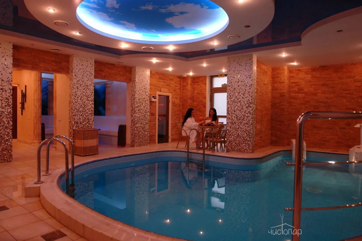 • открытый бассейн с подогреваемой водой (зимой t воды=27°С)