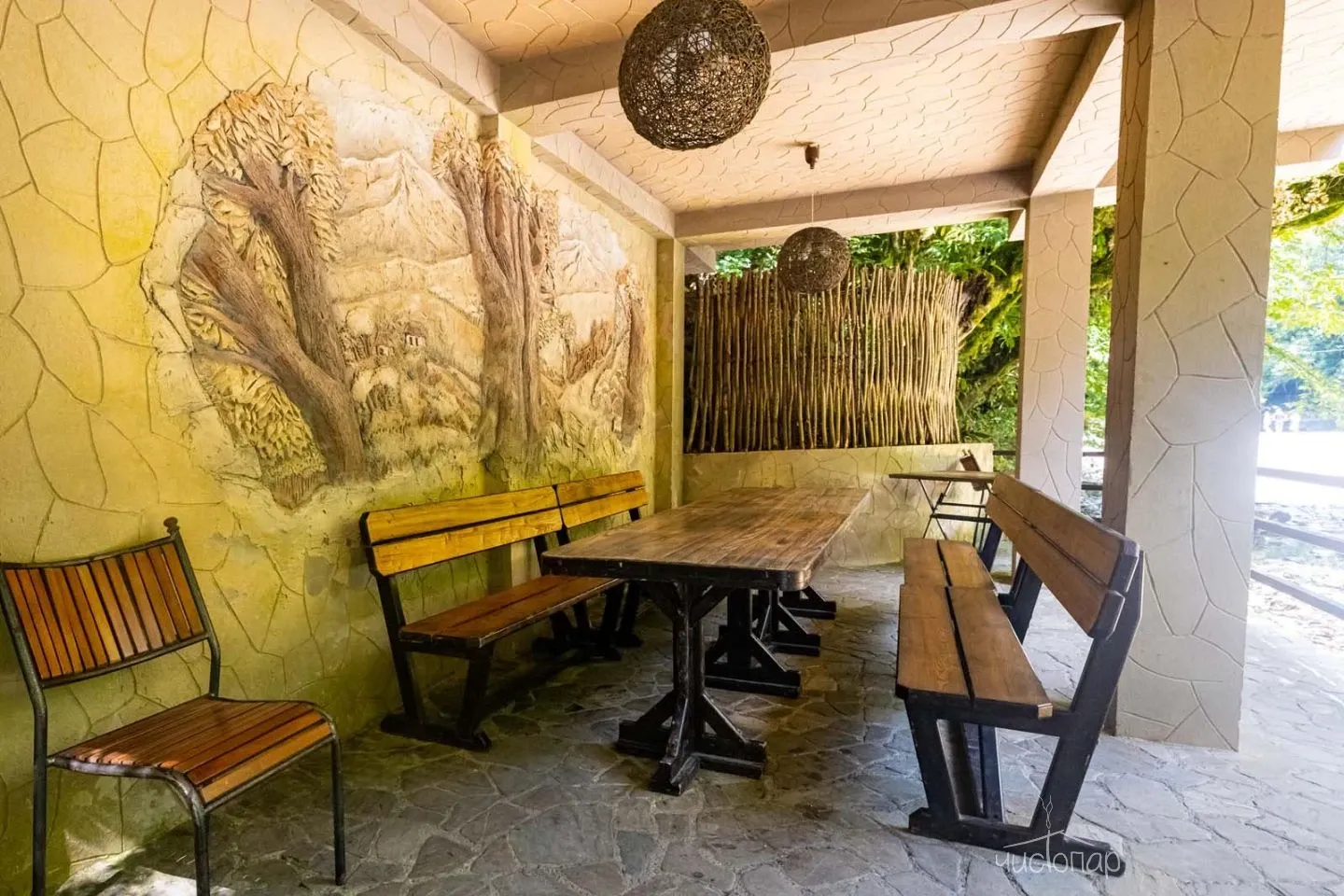 После банных процедур можно расслабиться в одной из беседок, относящихся к ресторану «Навалищенское ущелье». Здесь можно отведать как национальную кавказскую кухню, так и более привычные блюда, наблюдая за красивыми видами природы. Также можно сделать красивейшие фото на фоне обрыва.