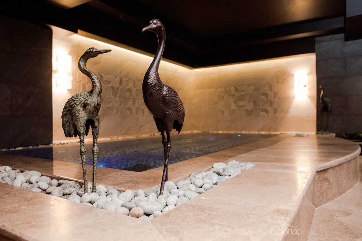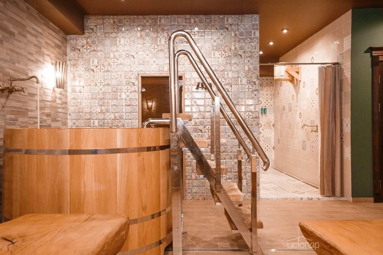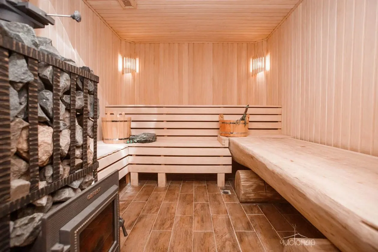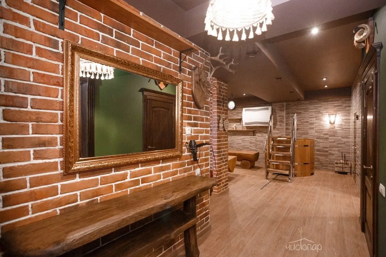 Баня «Жар-птица» покорит своих гостей мебелью ручной работы из массива дуба, которая, в сочетании с современными решениями, создает уникальный интерьер. Обстановка бани полностью основана на использовании исключительно натуральных материалов: дерева и керамики. В отделке парной использовались разные породы липы, славящиеся своими полезными свойствами и благоприятным воздействием на организм человека.