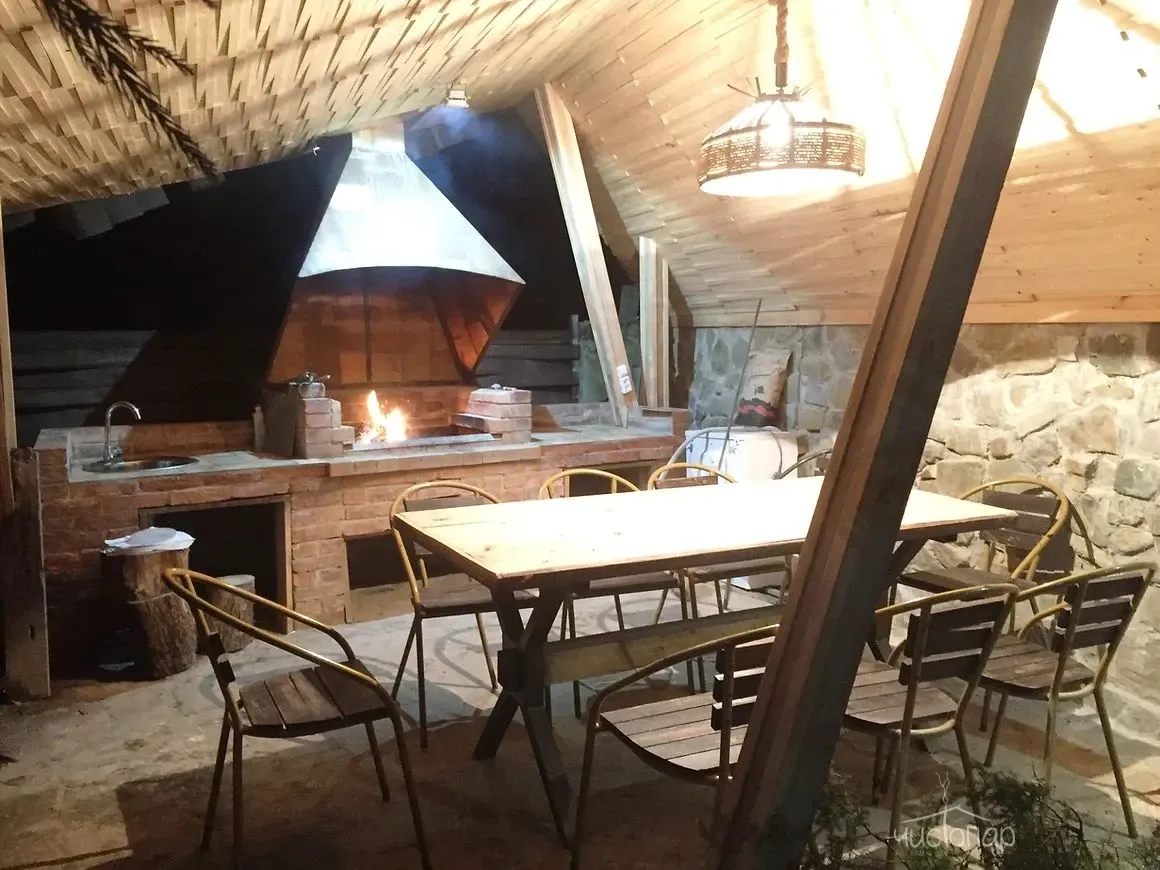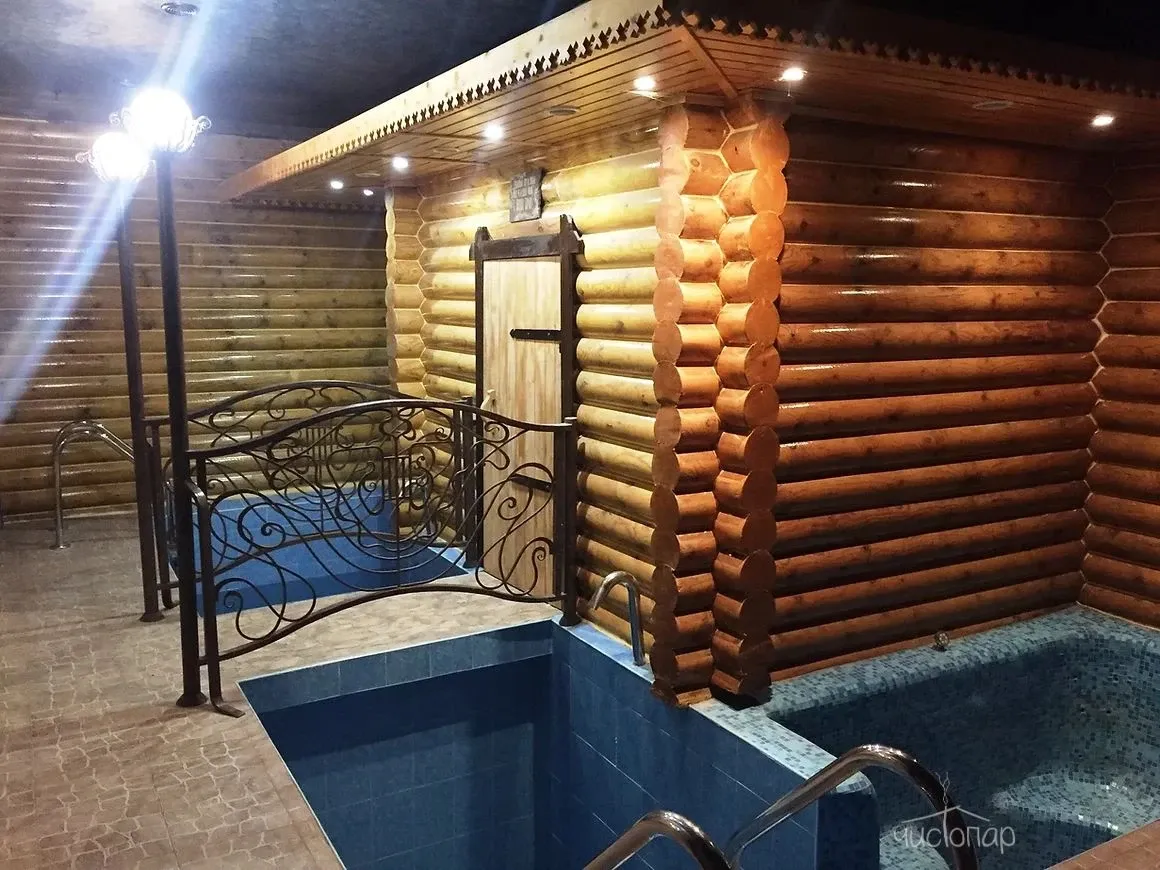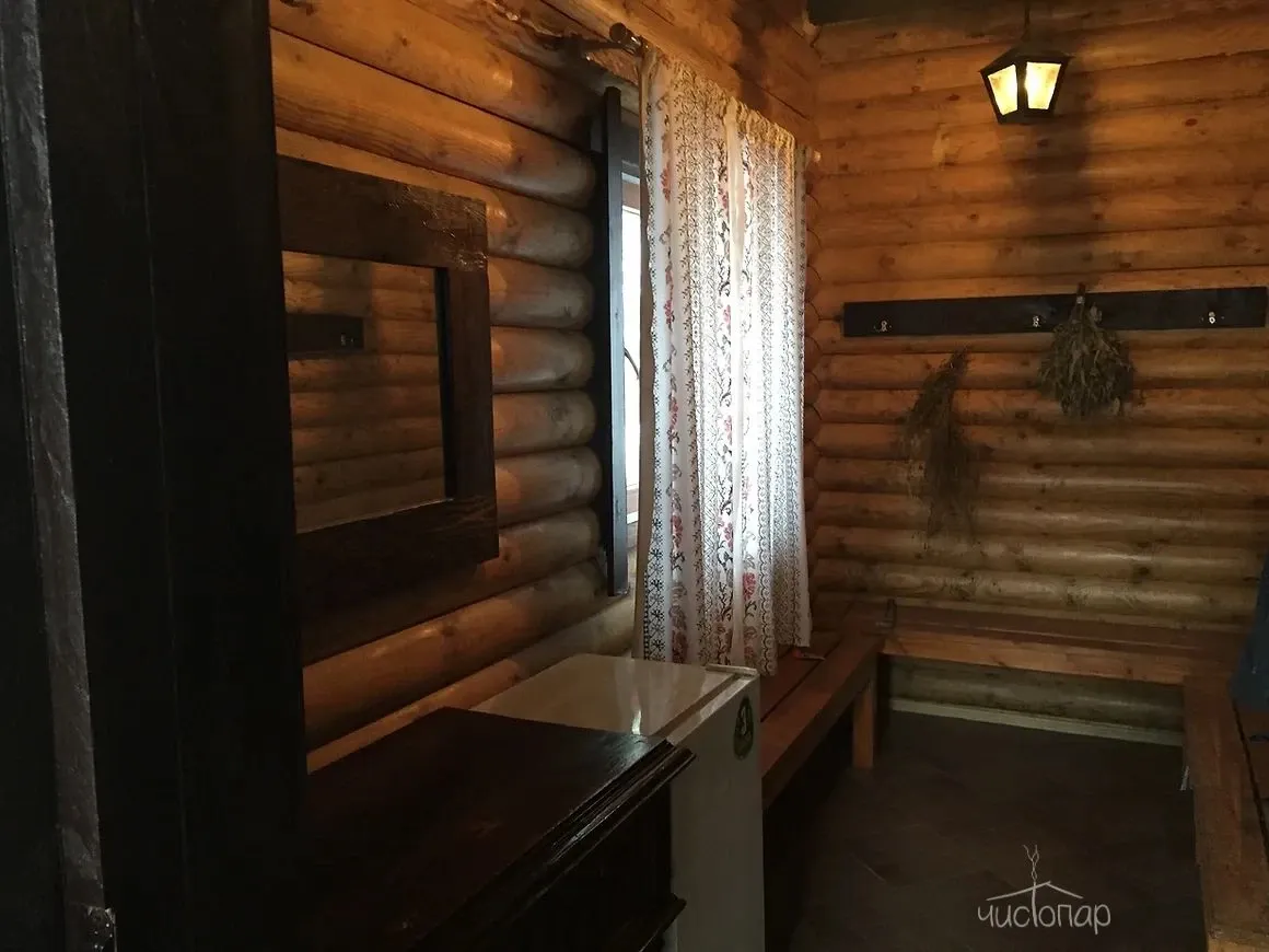 К услугам гостей русская баня на дровах из оцилиндрованного бруса, площадью 110 м2. В бане два бассейна с холодной водой, с современной системой фильтрации воды, большая лейка-душ выполняющая функцию опрокидывающего ведра. Баня оборудована мягкой кожаной мебелью, СВЧ печью, имеется посуда. Каждому посетителю предоставляется полотенце и простыня. Вид из окон создает атмосферу дачного пейзажа с видом на реку Мацеста. После бани гостей ждет вкусный чай на горных травах. К услугам гостей беседка с мангалом из кирпича, где можно прекрасно провести время с друзьями, сочетая посещение бани и приготовление шашлыков на свежем воздухе.