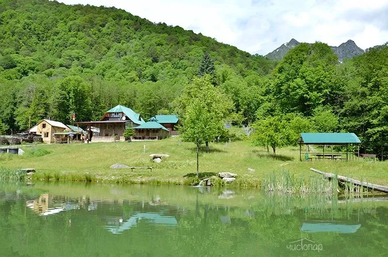 В предгорьях Ачишхо, где берет свое начало маленькая, но с характером речка Бешенка, на живописной поляне с тремя озерцами расположился комплекс "Рыбино".