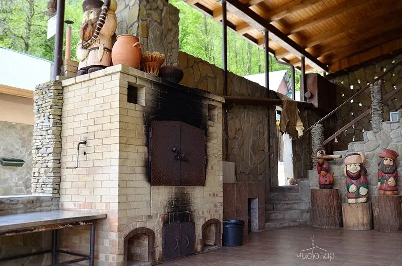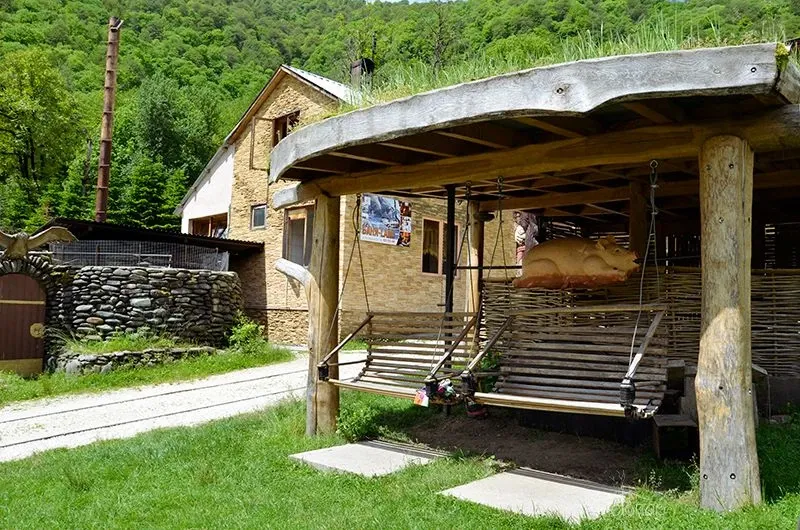 На поляне пасутся козы и бараны. Вы всегда можете попробовать свежее козье молоко, вкусный и очень полезный козий сыр, а так же фирменные блюда комплекса: шулюм из козленка и барашек (козленок) на вертеле.