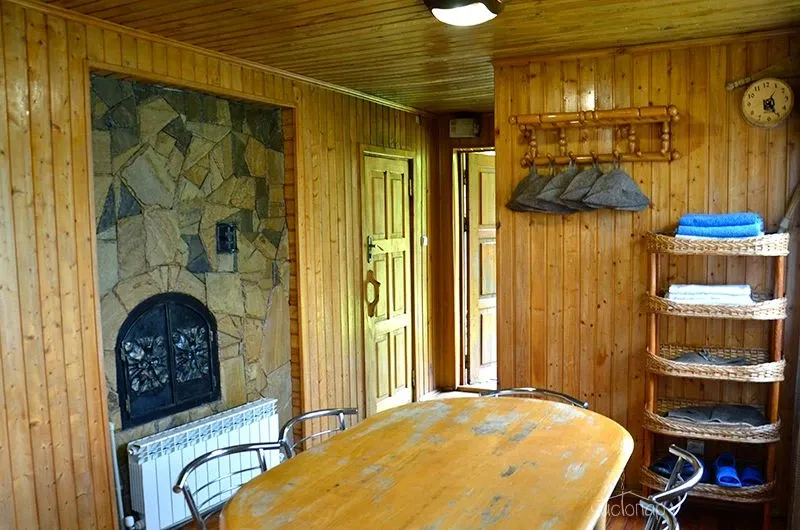 Кроме того на комплексе есть Русская баня. Небольшой деревянный домик, который топится дровами и имеет выход к естественному водоему.