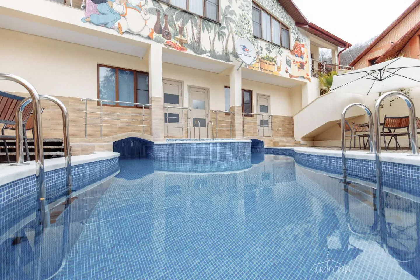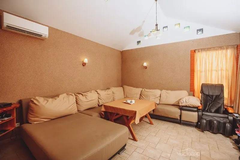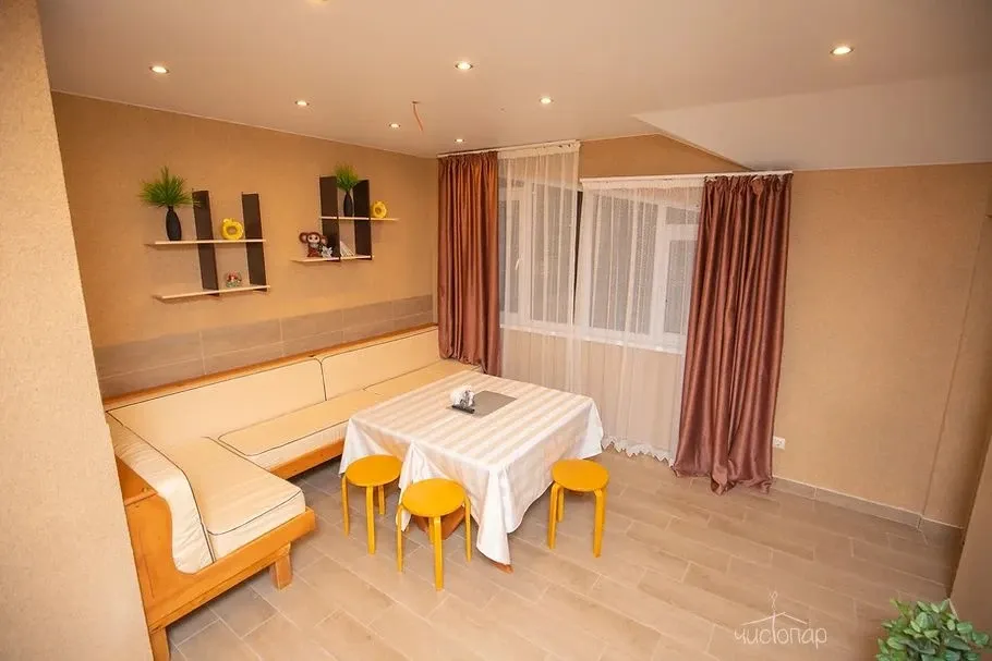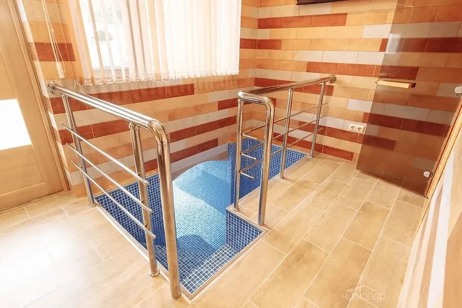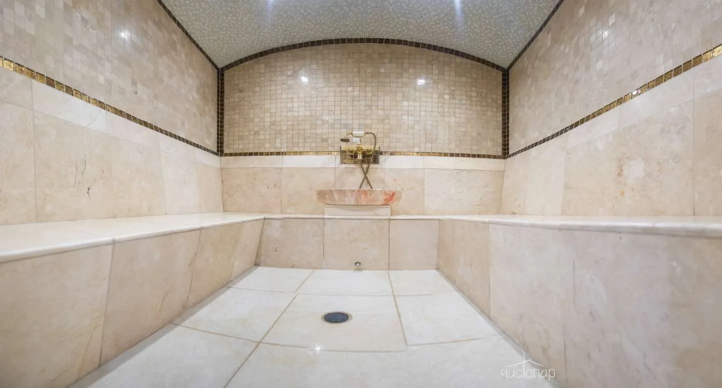На первом этаже располагается русская парилка на дровах, посещение которой очень полезно для здоровья, помогает снять напряжение и избавиться от недомоганий. Любителям попариться предоставляются веники. По желанию, можно пригласить профессионального банщика, который сделает ваш отдых ещё приятнее. Обливание из ведра холодной водой вернет бодрость духа, а для тех, кто не готов к столь резкой смене температур есть бассейн с подогревом. В гостиной с удобным диваном во время застолья можно блеснуть перед друзьями вокальными данными, воспользовавшись установкой караоке с впечатляющим выбором песен. На втором этаже есть комната отдыха, оборудованная кондиционером с двуспальной кроватью и очень удобным мягким креслом. Гостям предлагается полезный и вкусный травяной чай с угощением и настольные игры. Чистые полотенца, простыни, шапочки и тапочки предоставляется гостям. К вашим услугам предлагается массажное кресло. Новинка: "Снежная комната" - помещение с настоящим сочинским снегом!