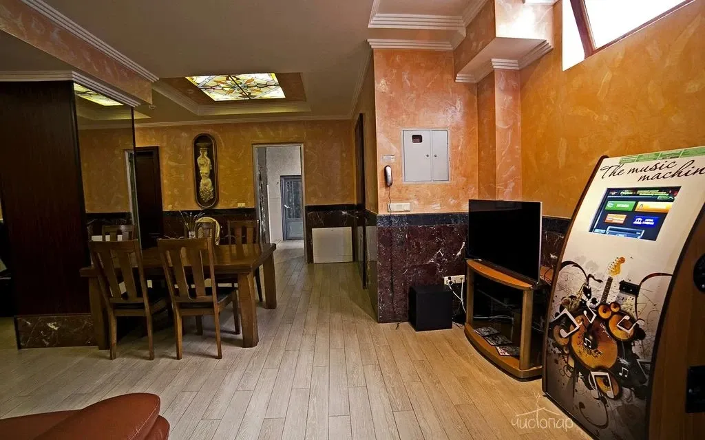 Имеется бар с прохладительными напитками, массажное кресло, караоке