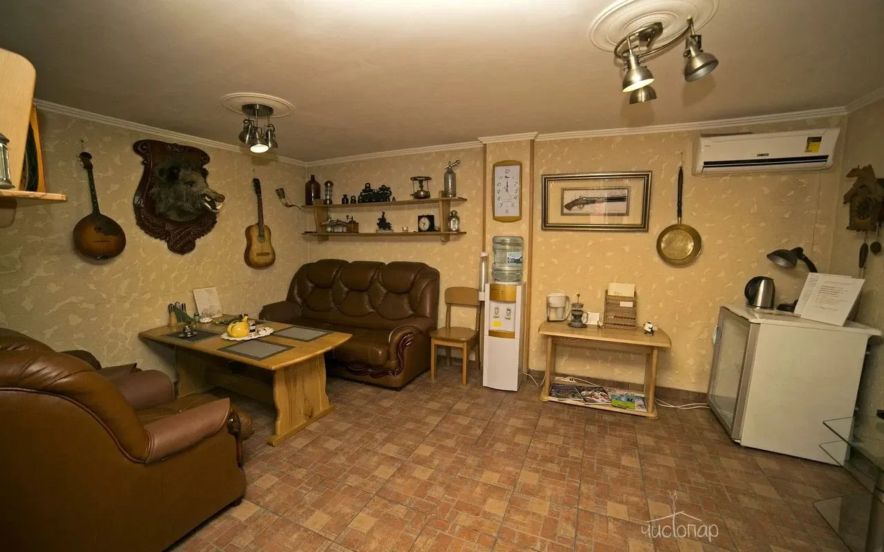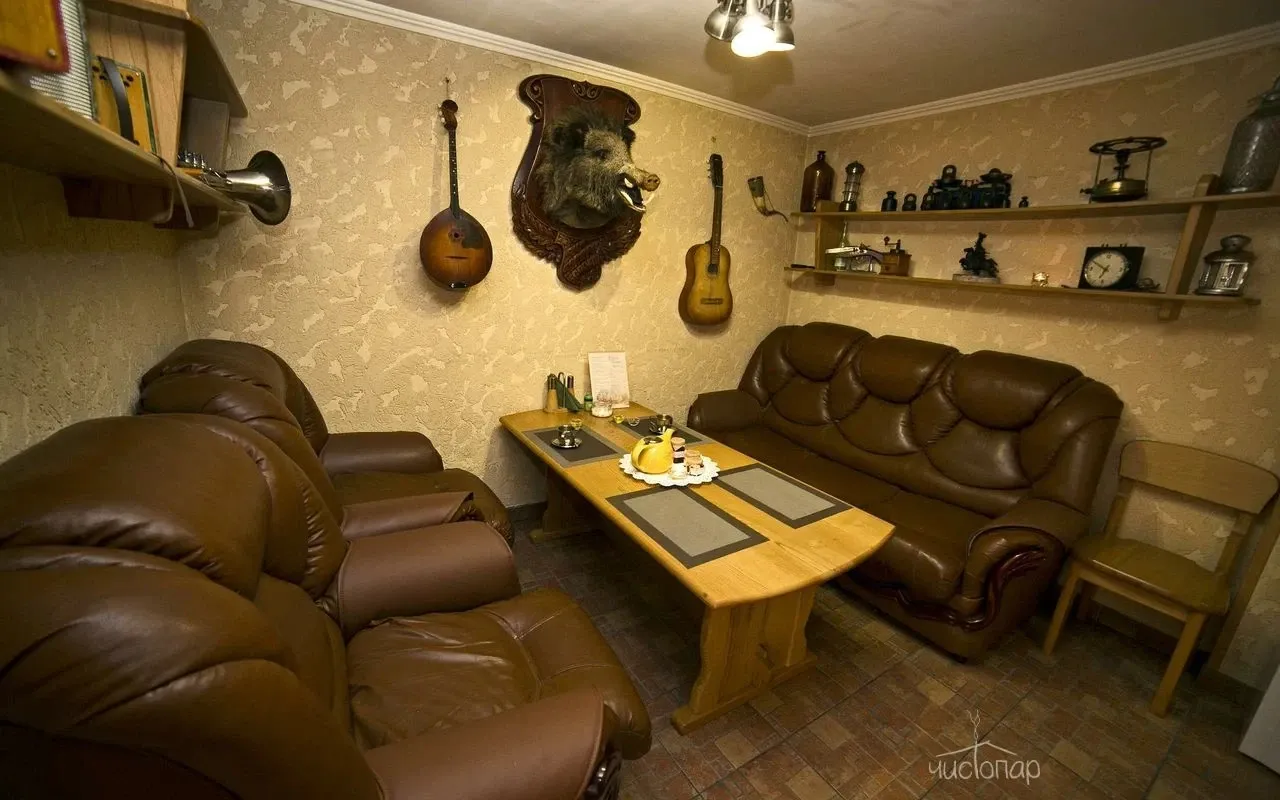 Русскую Баню, Купель, Комнату отдыха, Караоке, Банный веник, Чай и мёд.