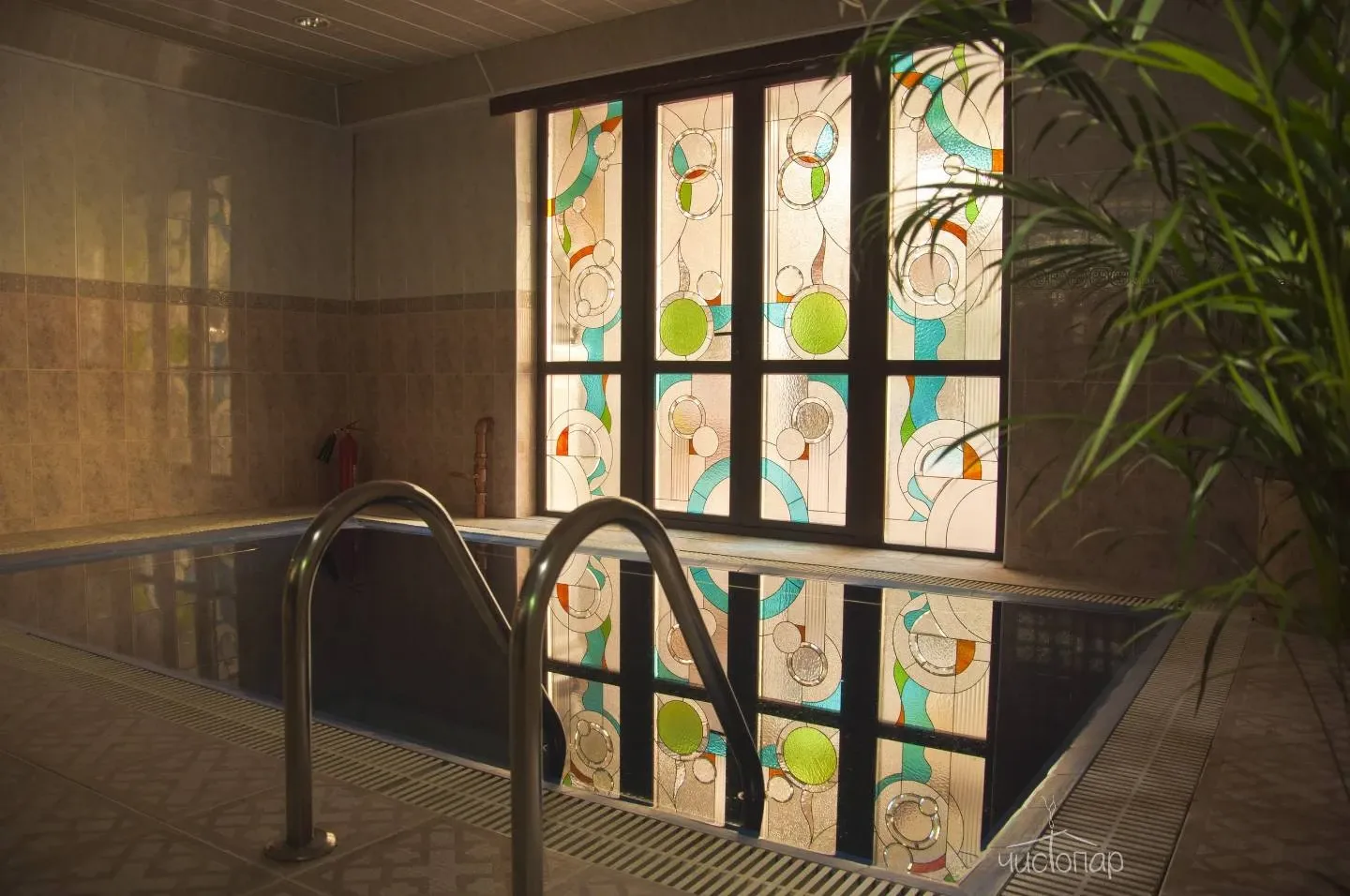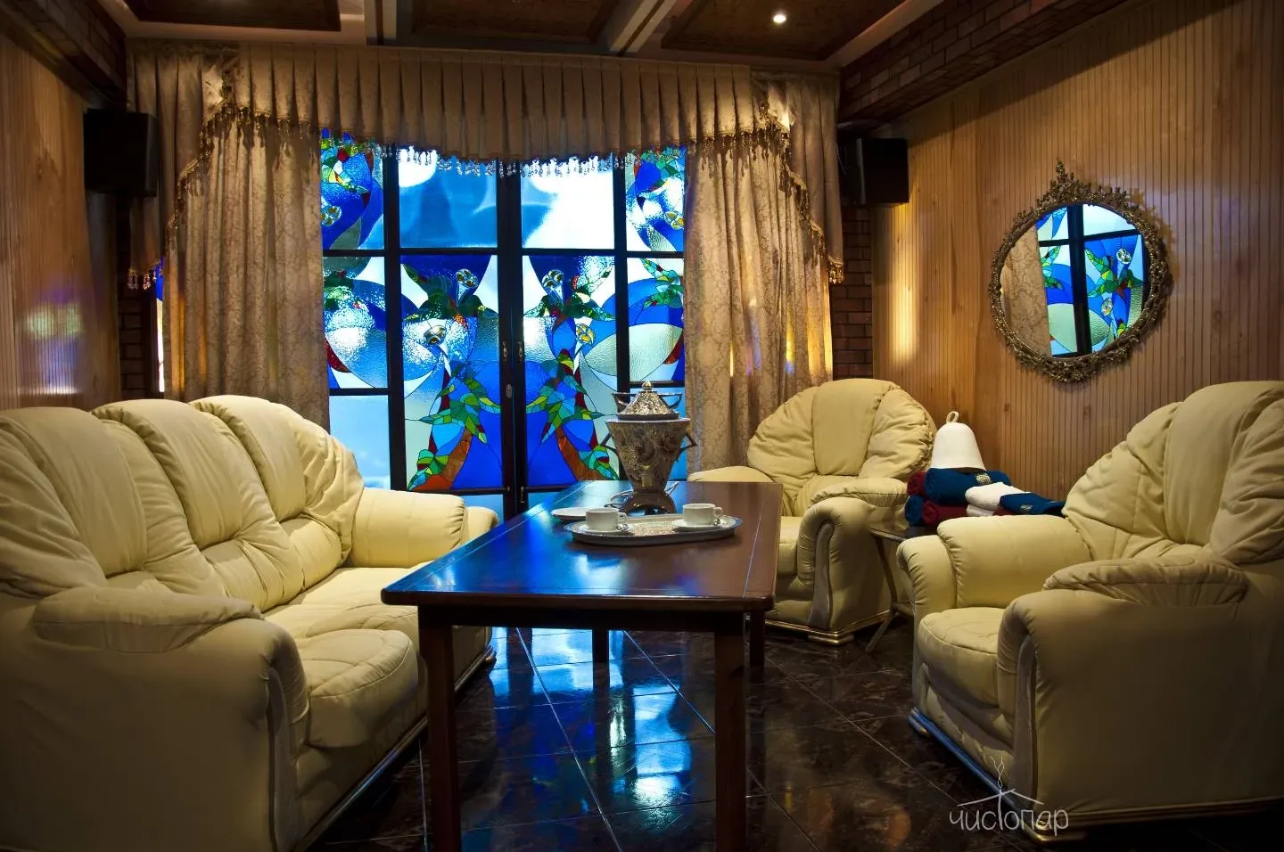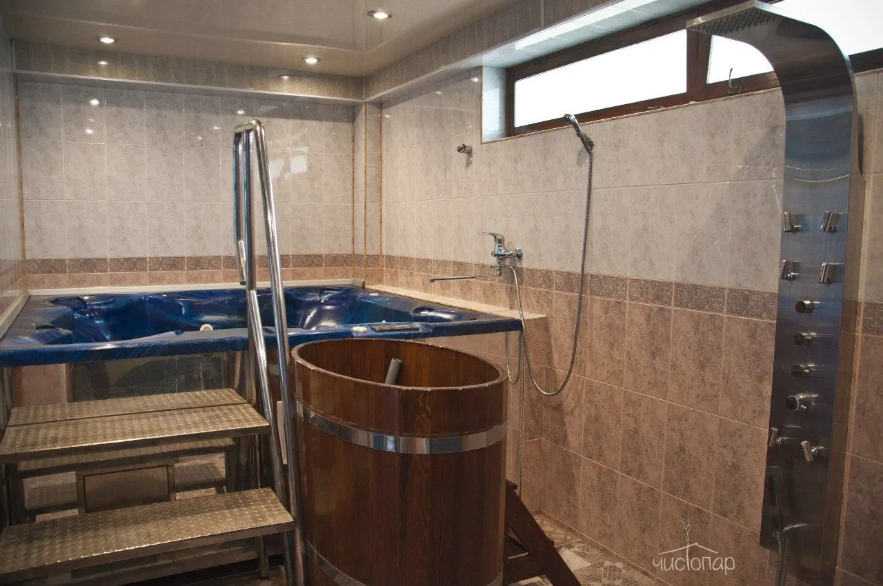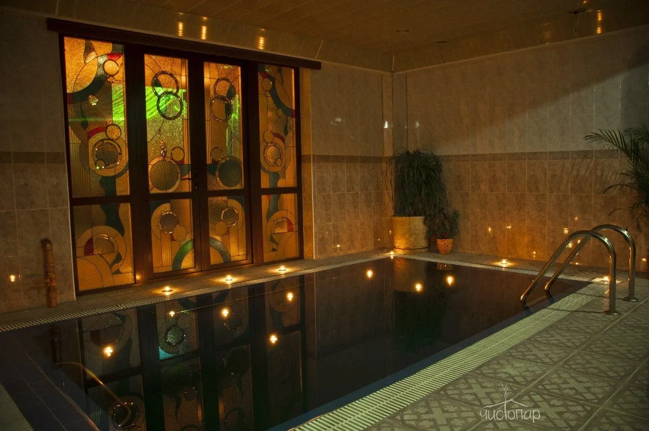 После прохождения парных процедур каждый желающий сможет охладить тело и взбодрить дух в бассейне, вода в котором фильтруется посредством современного оборудования для безопасности каждого гостя, а затем присоединиться к близким и дорогим людям в гостевом зале, чтобы насладиться общением, а также легкими закусками и напитками. Также в гостевом зале имеются зоны отдыха, а желающие отдохнуть смогут уединиться и даже подремать в комнате отдыха с мягким диваном.
