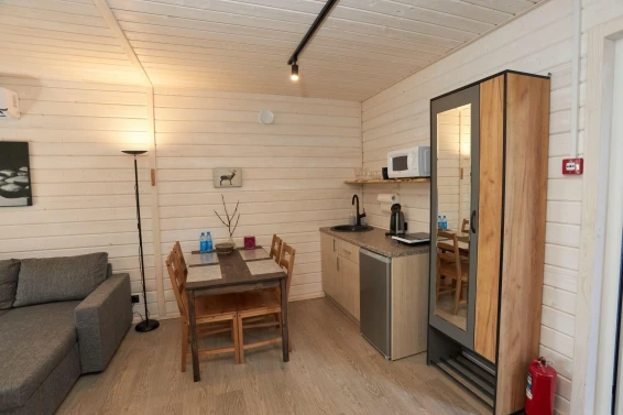 После насыщенного дня приятно расслабиться в дровяной бане и насладиться атмосферой уюта в комнате отдыха, или же приготовить что-то вкусное на мангале. Горячая купель на берегу озера станет отличным способом расслабиться и насладиться живописной природой.