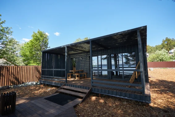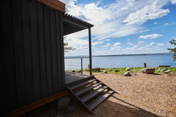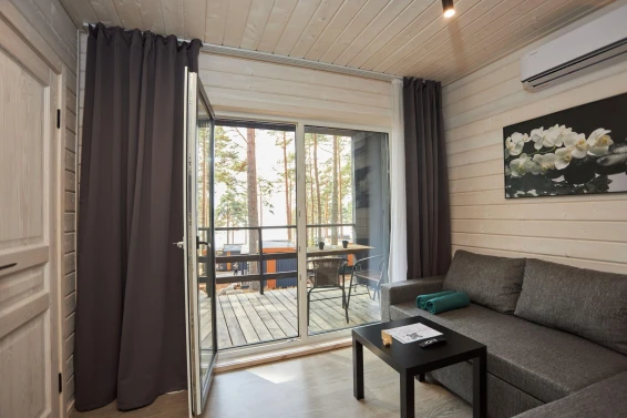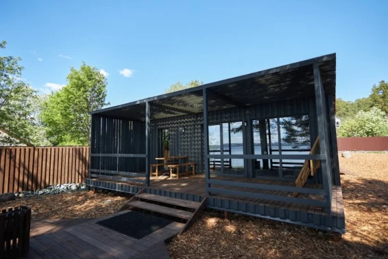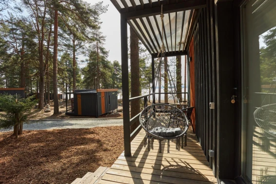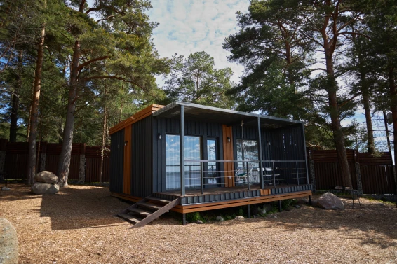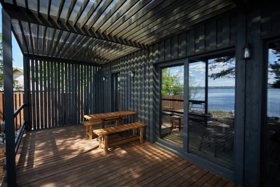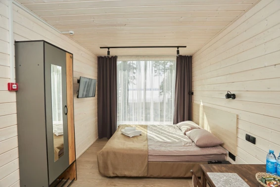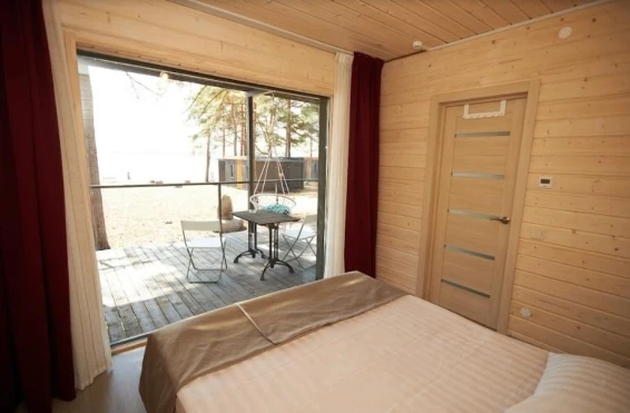 Комфорт студио (первая береговая линия)Комфортный гостевой домик для двоих 18м2, с панорамным видом на Онежское озеро и сосны.