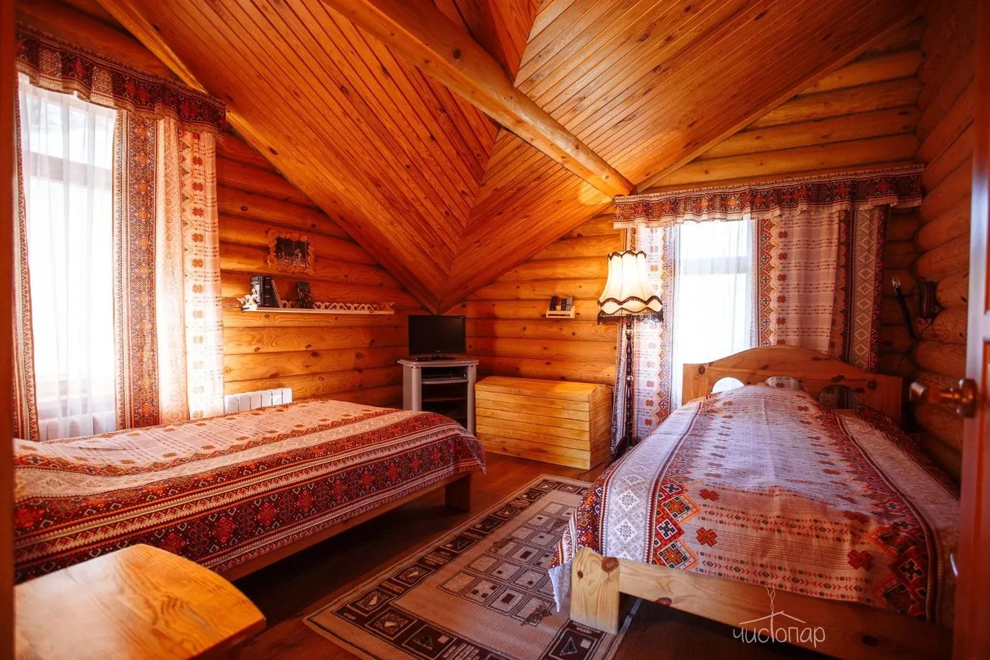 Двухместный номер. Двухэтажный бревенчатый дом, рассчитанный на 2 основных и 2 дополнительных места входящих в стоимость + 2 дополнительных за отдельную плату.