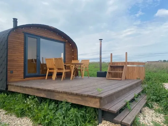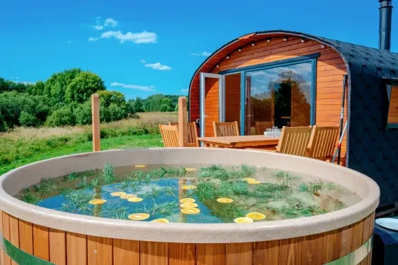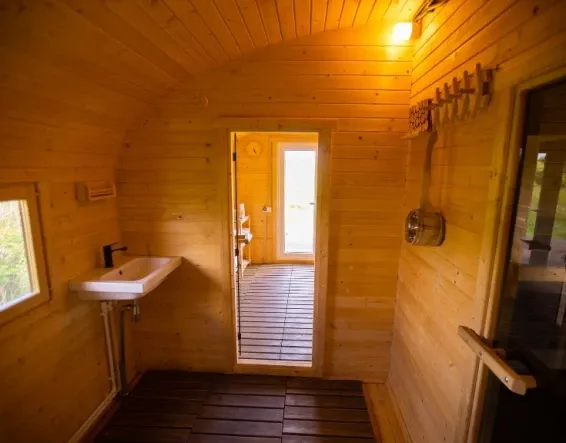 Утеплённый Лодж "Закаты Селигера" с фурако-купелью на террасеВместимость до 3 мест. Один ребёнок до 6 лет — можно без отдельного спального места.