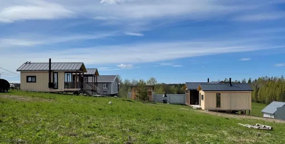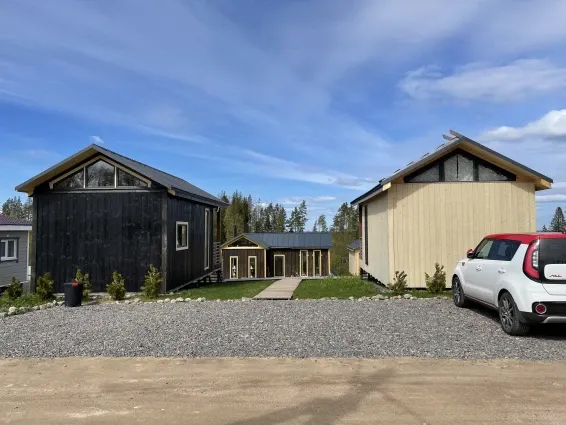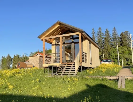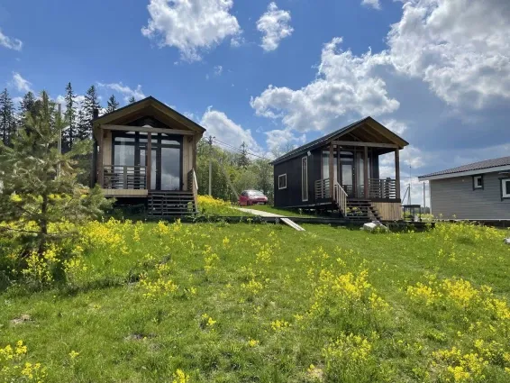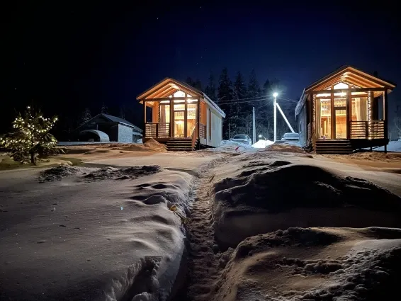 Домики с камином и панорамным остеклением, потрясающим видом на лес, в 5 км от "Игоры" горнолыжного курорта и автодрома Игора Драйв. Посёлок окружён лесом, можно погулять и отдохнуть от городской суеты.