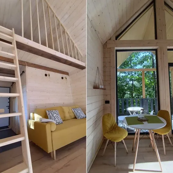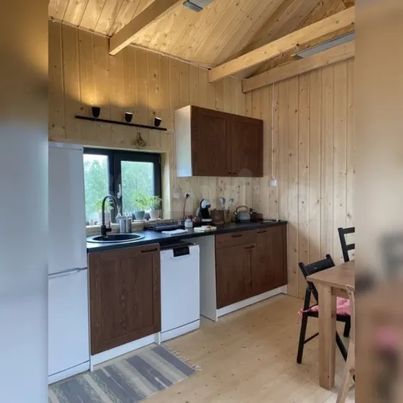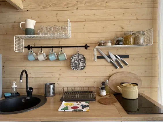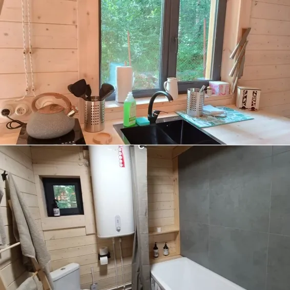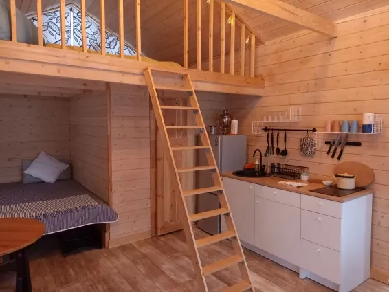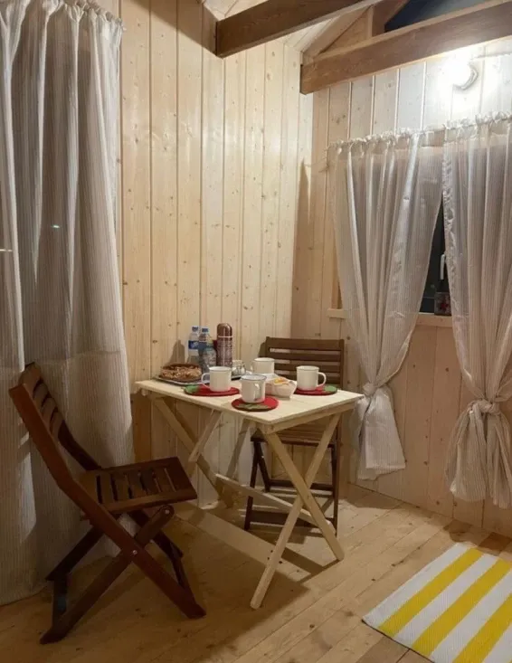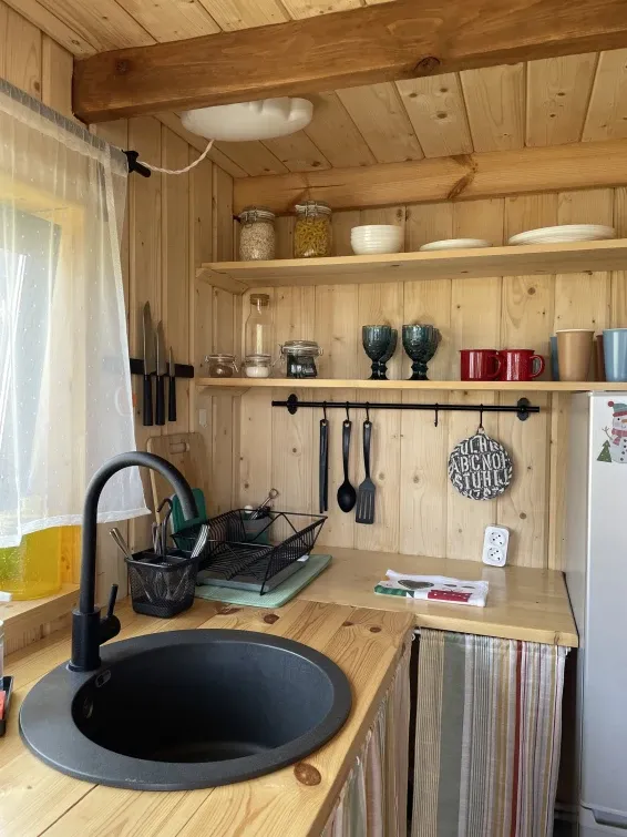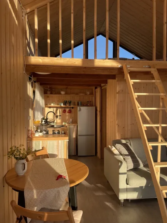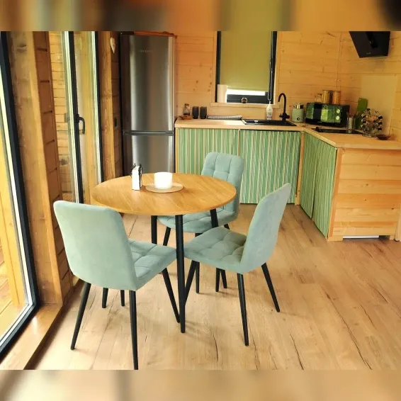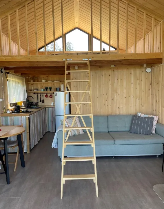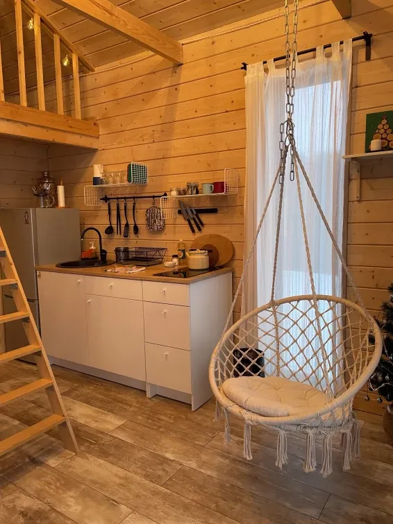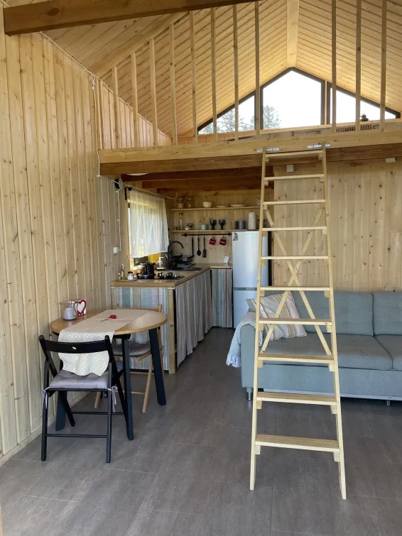 В уютных и стильных домиках предусмотрено все для комфортного отдыха в любое время года. У каждого домика своя терраса и мангал. Предоставляется все необходимое для барбекю: угли, дрова, розжиг, шампура.