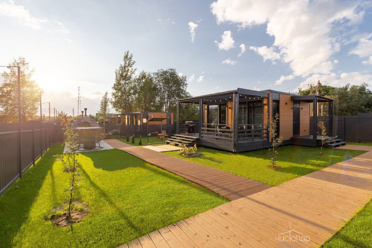 Просторная спальня с кроватью размером “king size” для полноценного отдыха и детская комната для вашего ребёнка. В просторной кухне-гостиной располагается комфортный и удобный диван, который может разместить двух дополнительных гостей. Дом полностью укомплектован посудой на шесть персон и всем необходимым для приготовления пищи, включая капсульную кофемашину. В стоимость проживания входит возможность пользоваться двумя видами грилей: газовым и классическим мангалом, а также уютным кострищем под открытым небом. Для полного релакса - купель, расположенная на территории домика, она предоставляются за дополнительную плату (если не включены в соответствующий тариф).
