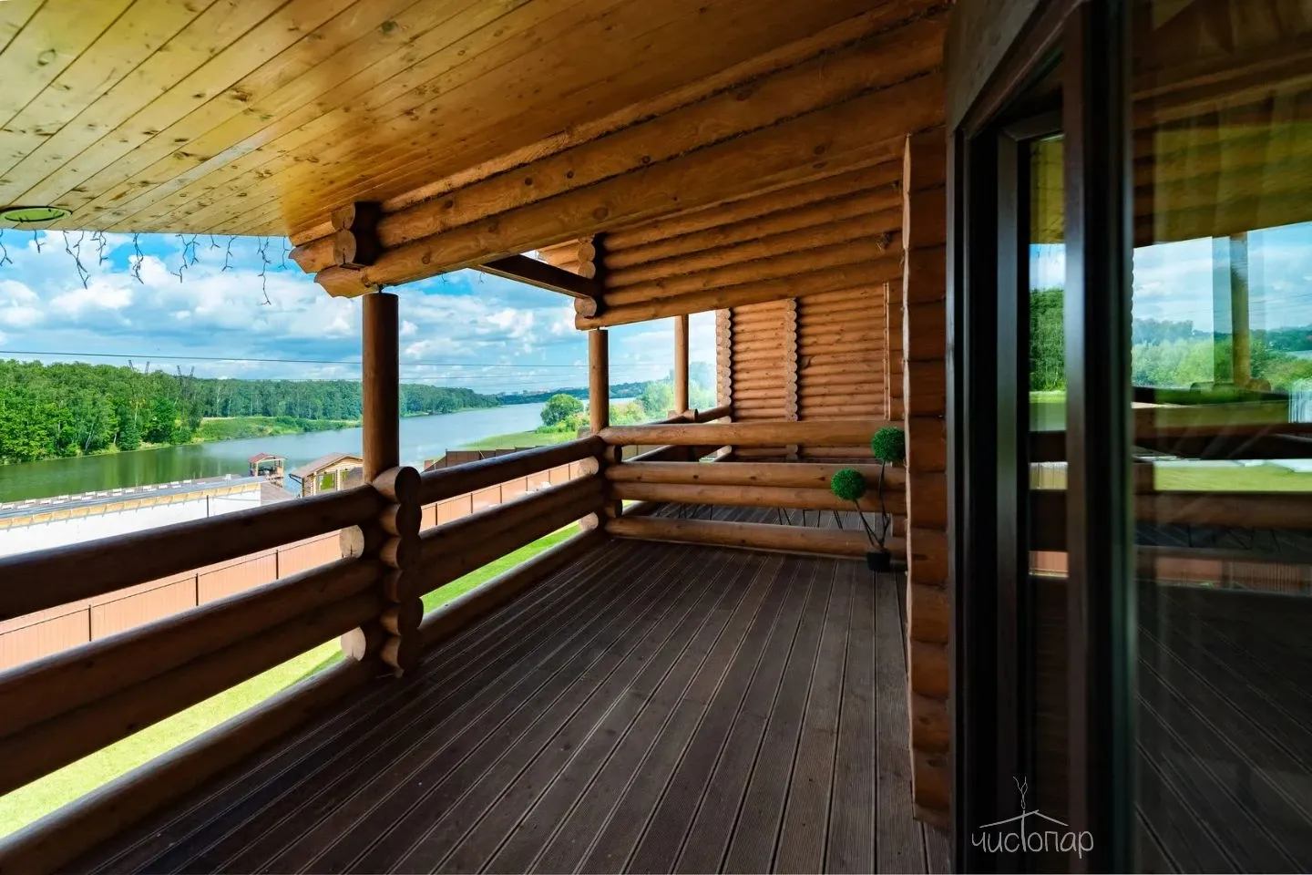 Три комнаты отдыха с высотой потолков от 4 метров (эксклюзивно для бревенчатых домов), что придает шарм спальням и высокую циркуляцию воздуха. А также собственный балкон-веранда с шикарным видом на берег озера с лесным массивом.