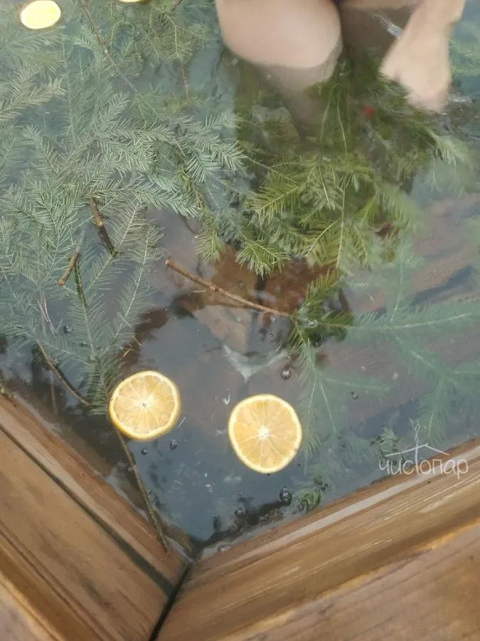 Молодильный чан с травами и бассейн.
