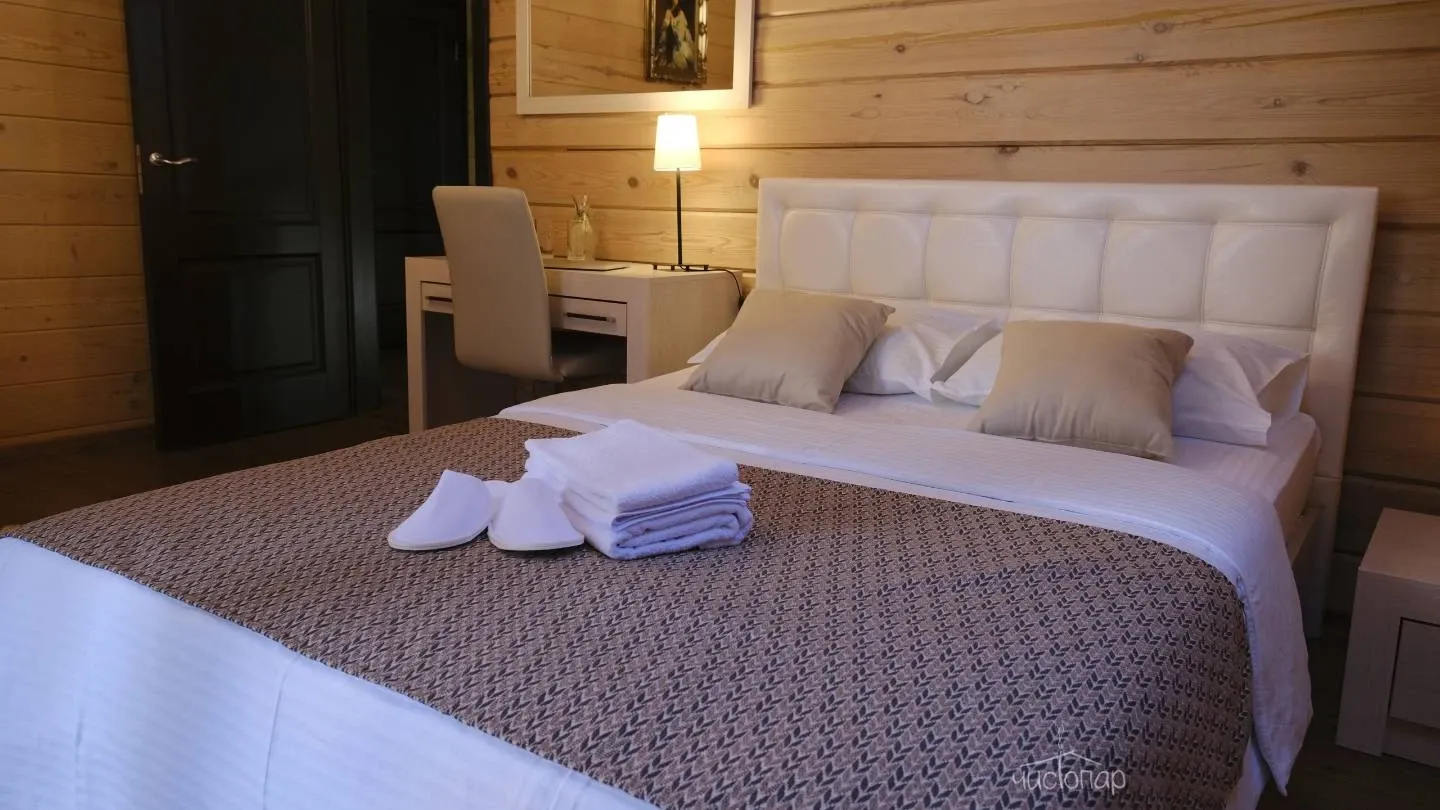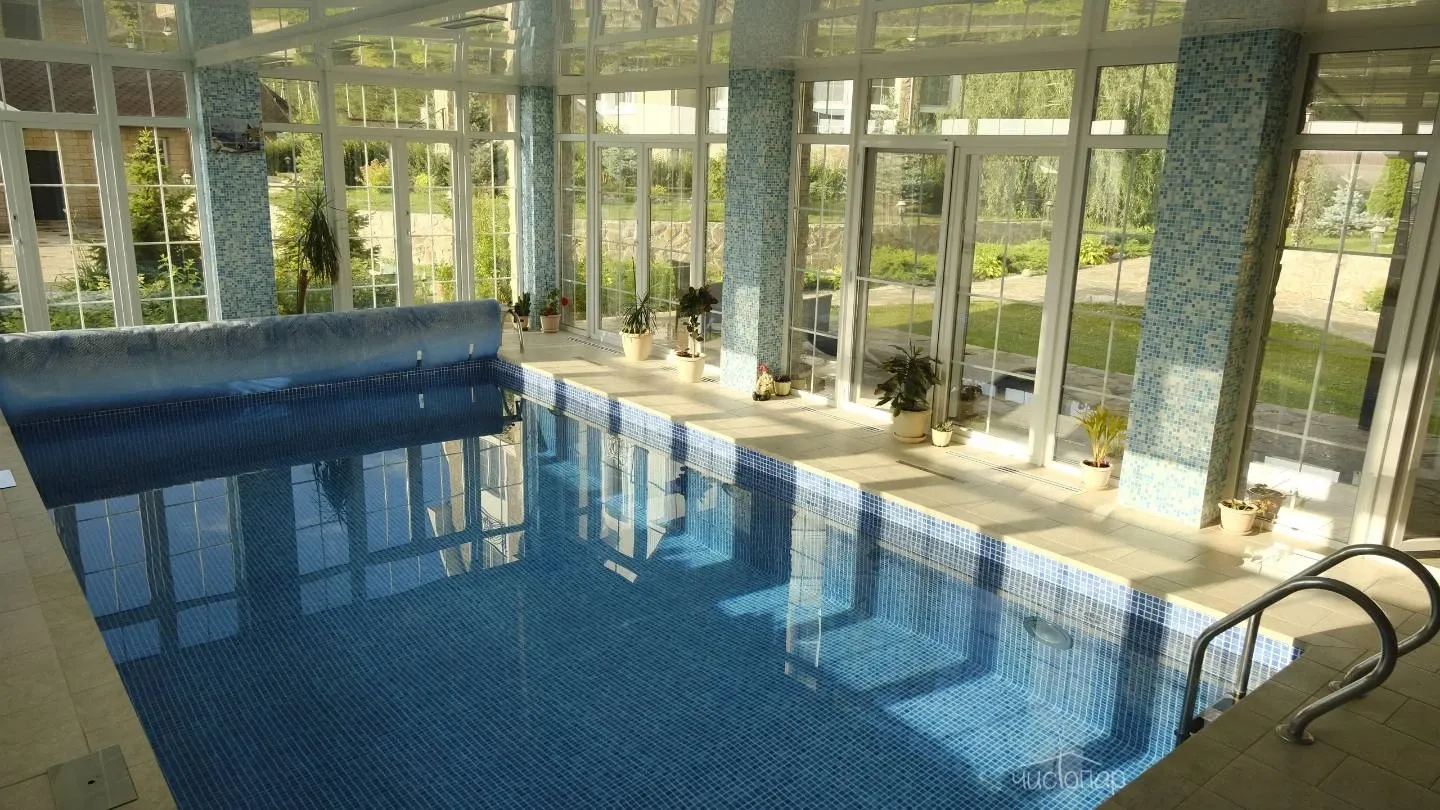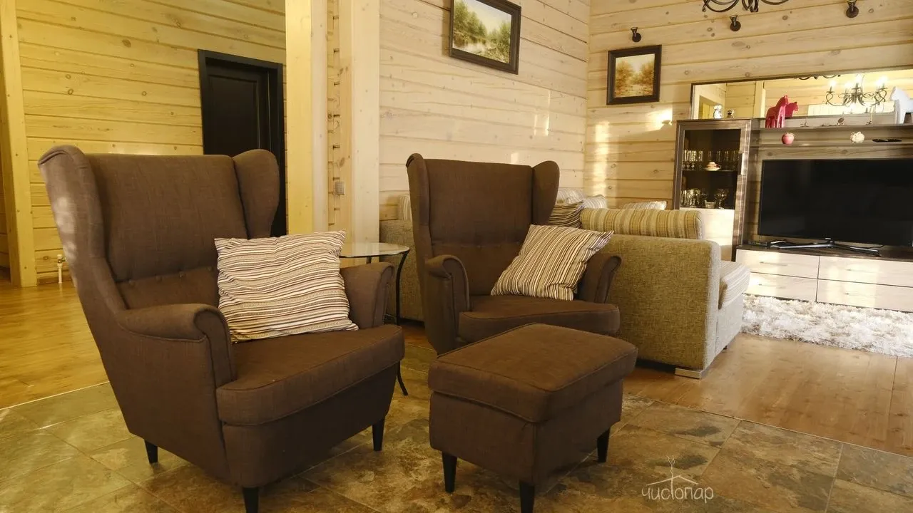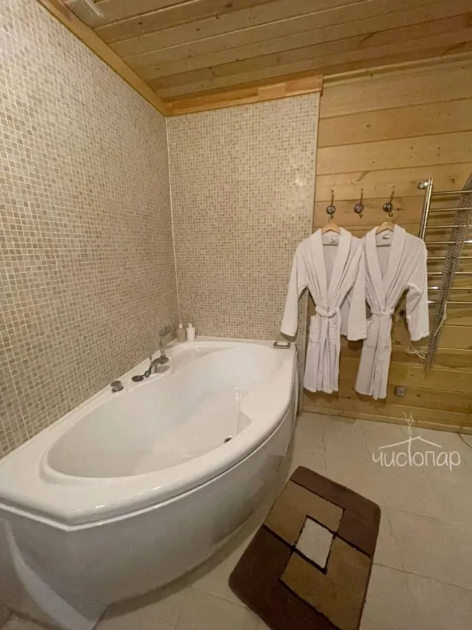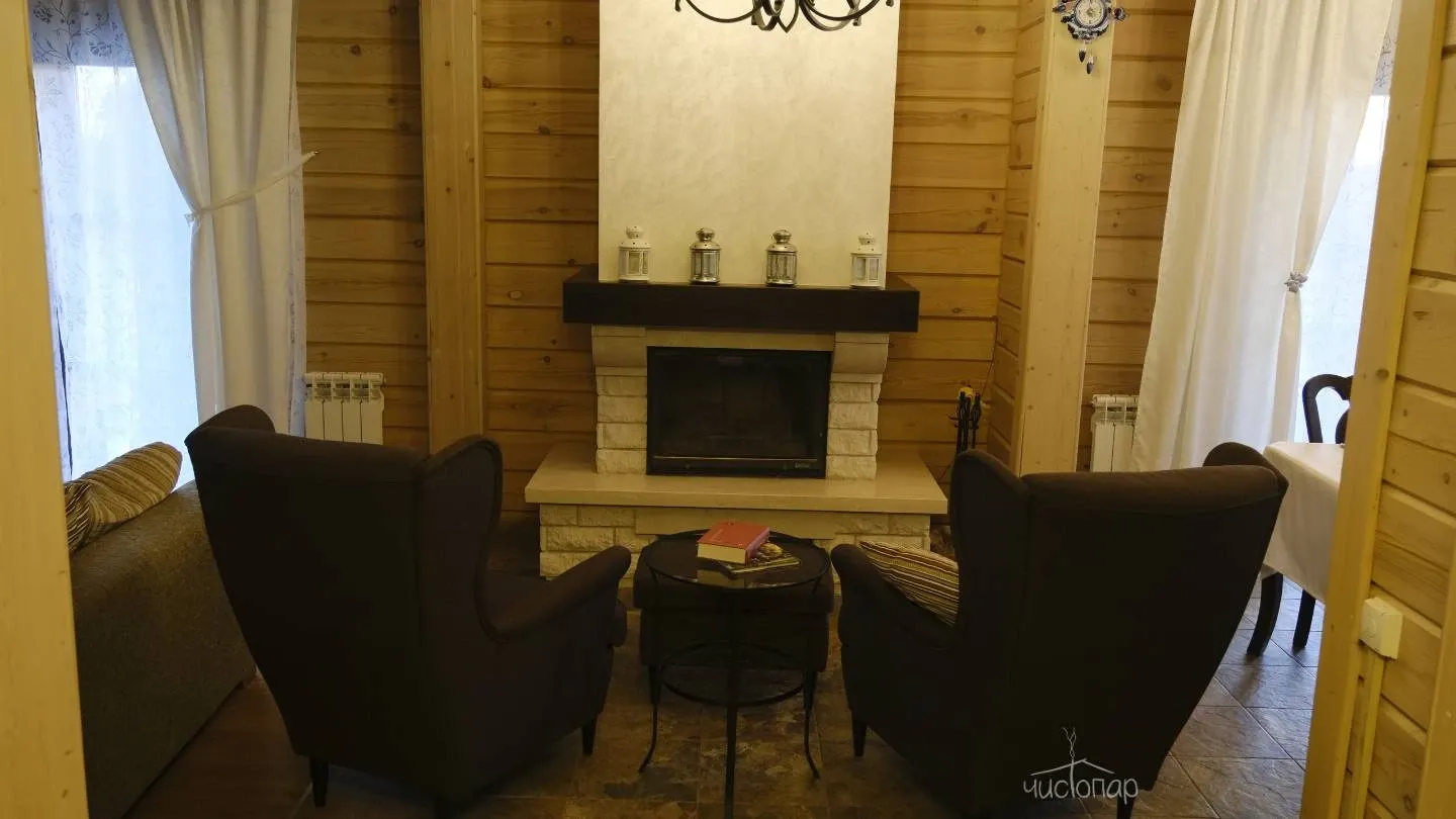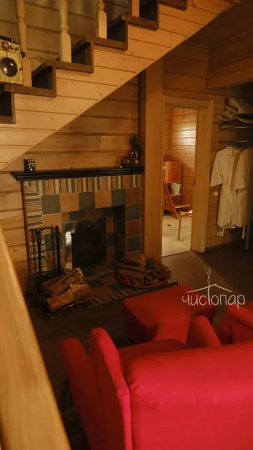 Гостевой дом «Усадьба. Бор» предлагает гостям баню и теплый бассейн, купель, душевая. Уютная гостиная с камином.