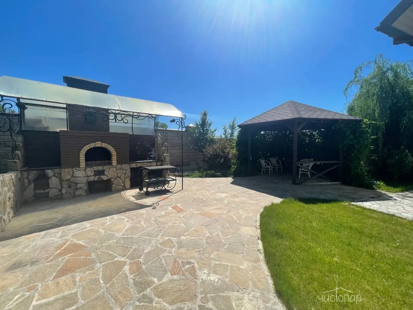 На территории «Усадьбы» уютная беседка и просторная мангальная зона.