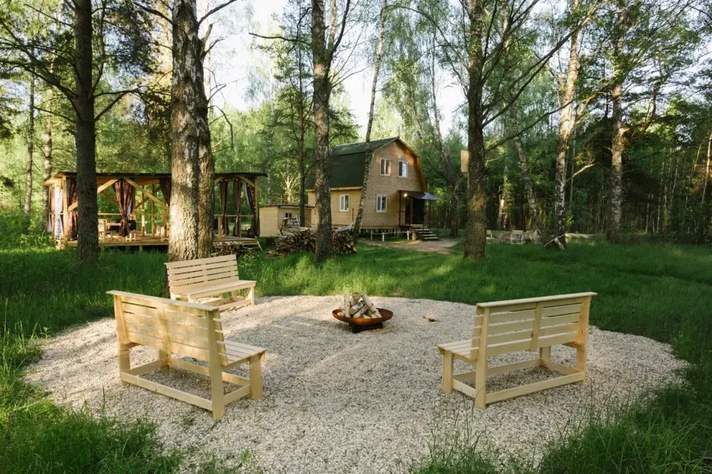 Глэмпинг расположился в одном из самых живописных мест Подмосковья, вблизи деревни Болотьково.