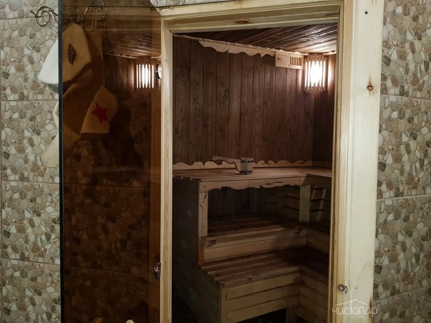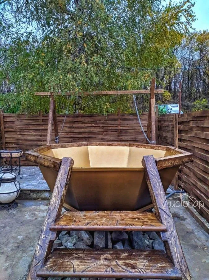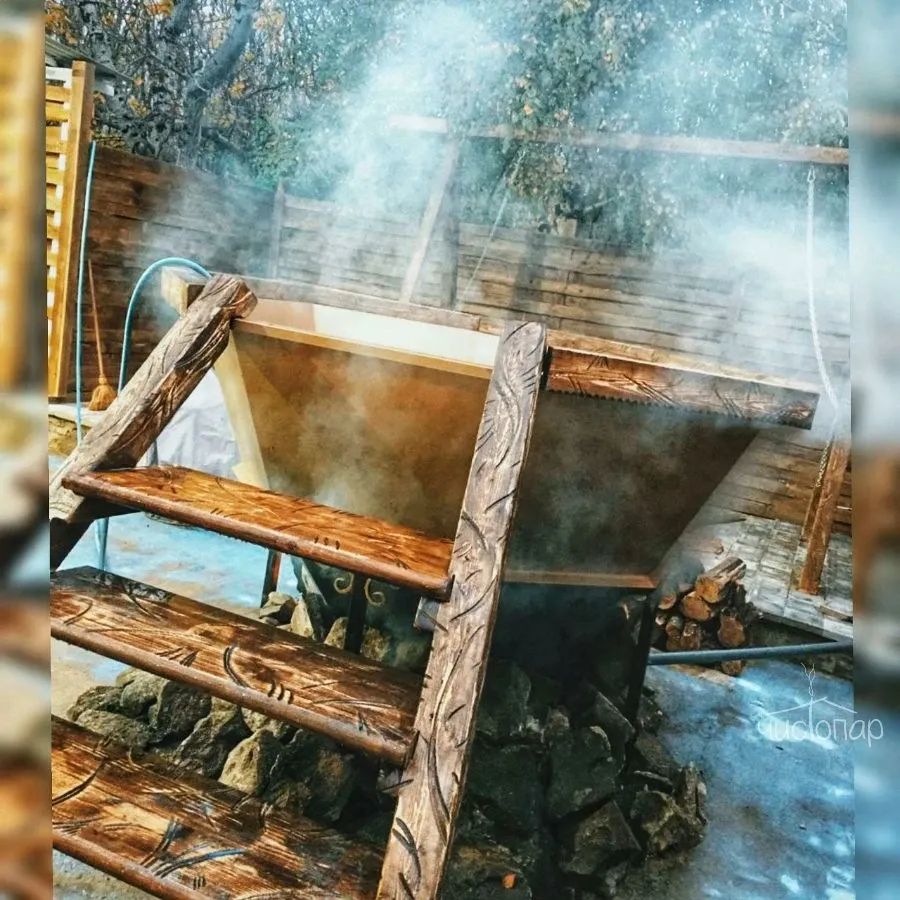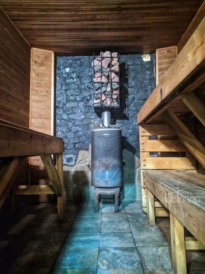Натуральные камни, сибирские котлы, правильный влажный пар, шашлык в тандыре, раки на костре, номера гостиницы.