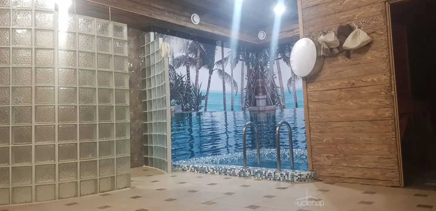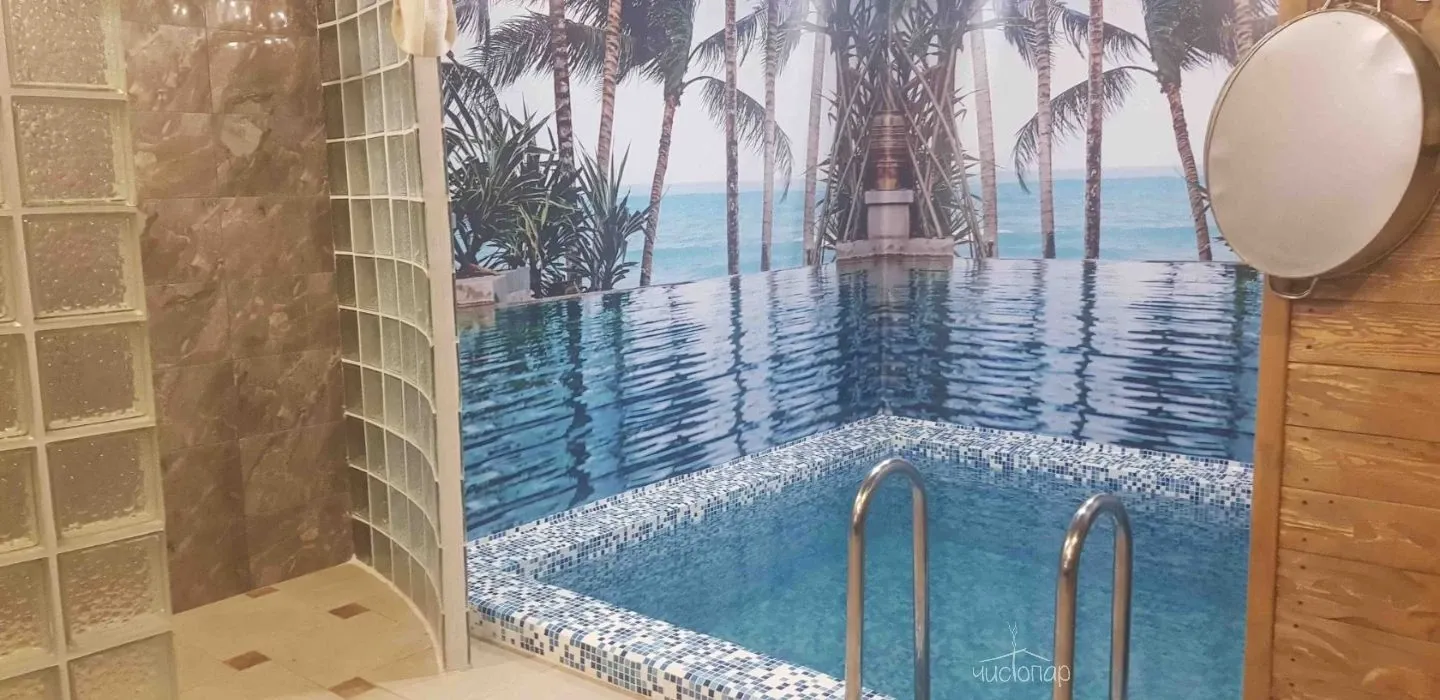 Бани имеют: чан, бассейн, купель ледяная, обливное устройство, массажный стол.