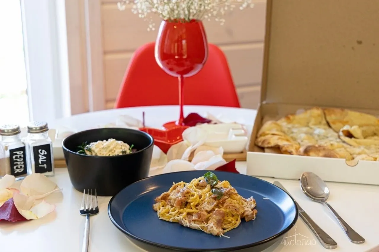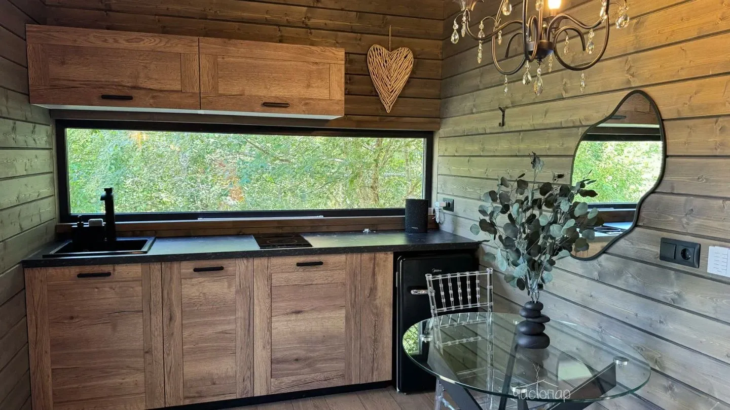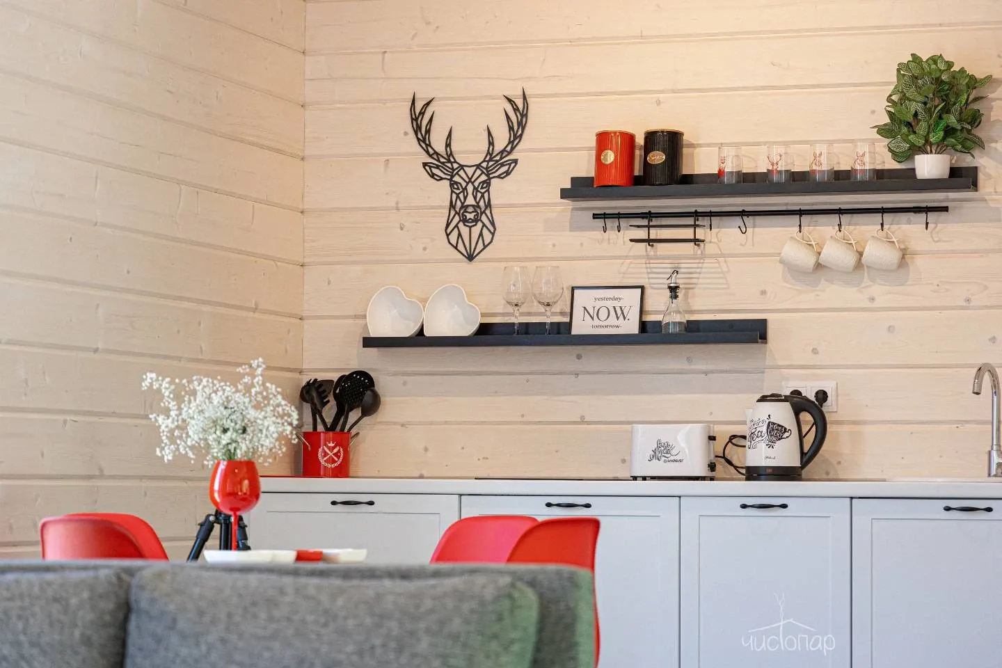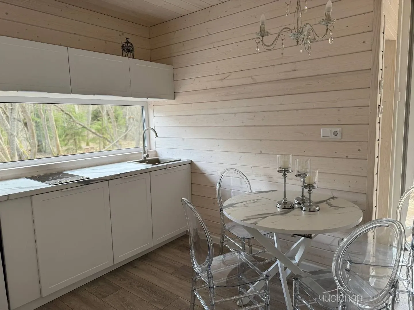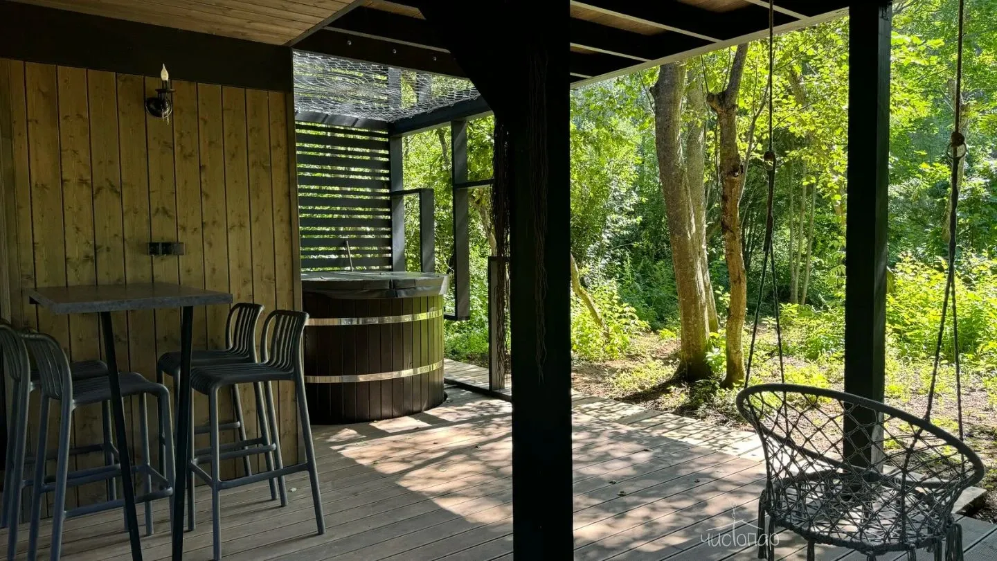 Здесь можно пожарить шашлыки, попариться в бане, искупаться в горячем чане, посмотреть кино на проекторе, покататься на катке и заказать готовый завтрак и продукты из местных ресторанов.