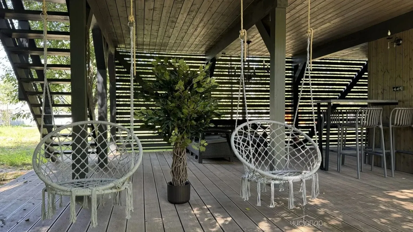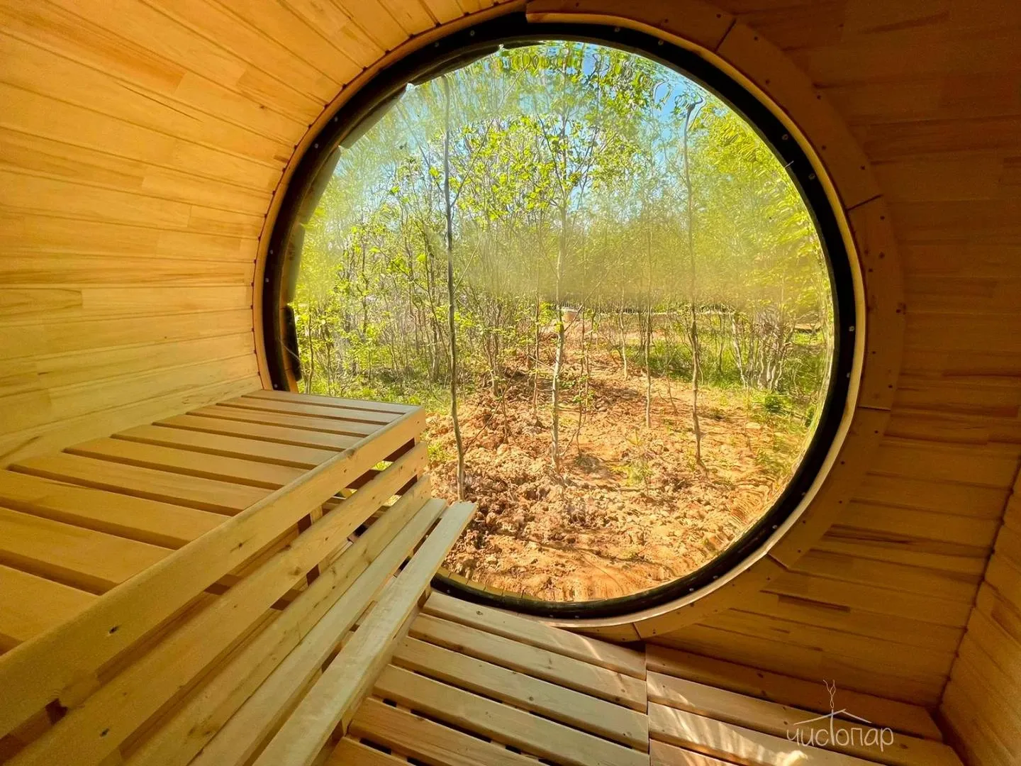 Баня с панорамными окнами, купель, крытый бассейн с лаундж зоной, зона барбекю у каждого бунгало и каждой сферы, гамаки и подвесные качели для отдыха, велосипеды, детская площадка и кролики, которых можно покормить и погладить.