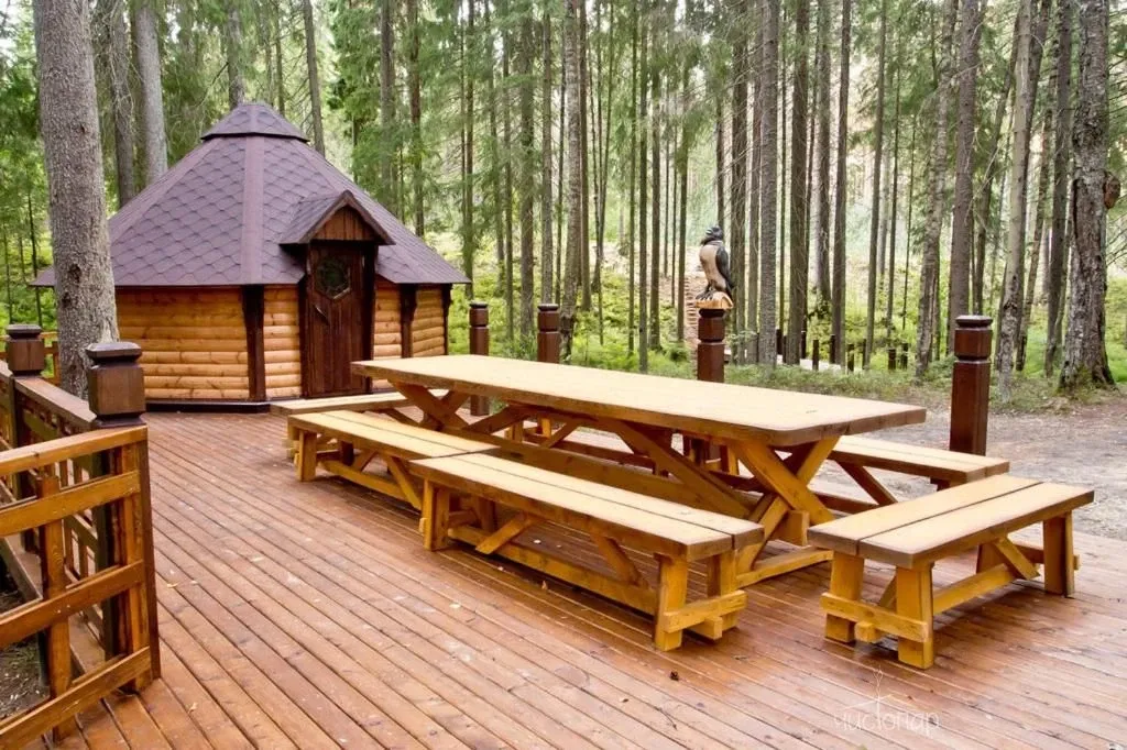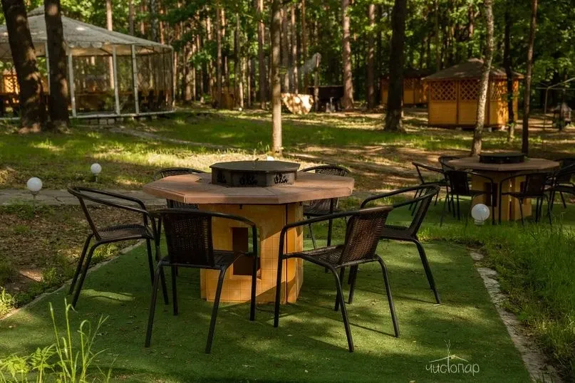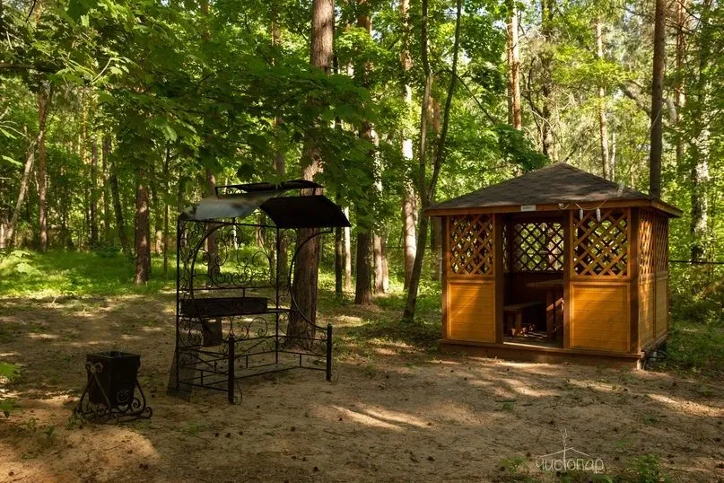 Беседки и мангальная зона с шампурами и решётками для жарки