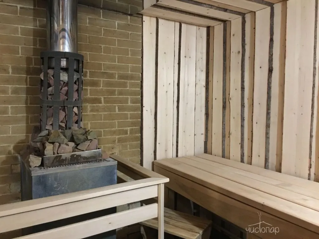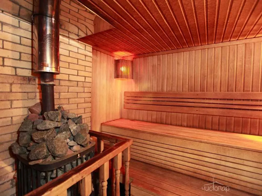 Сауна «ALPEN HOUSELUX сауна будет интересна своей парной с двухъярусной скамьей, банкетным залом с камином, мини-бассейном с водопадом.