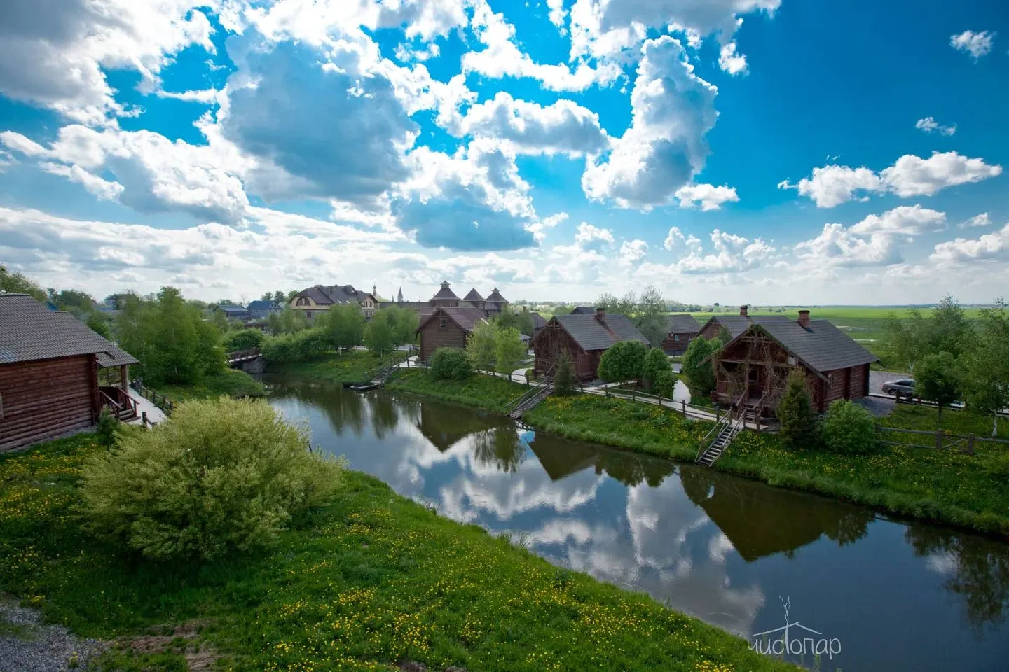 Уютная, обустроенная в старорусском стиле, территория отеля расположена на берегу реки Ключеницы в окружении живописных пейзажей. На территории отеля снимали различные фильмы, один из которых – «Царь» Павла Лунгина.