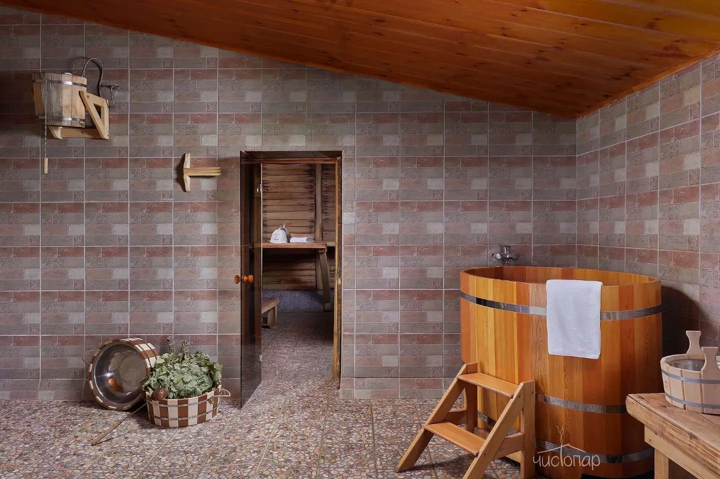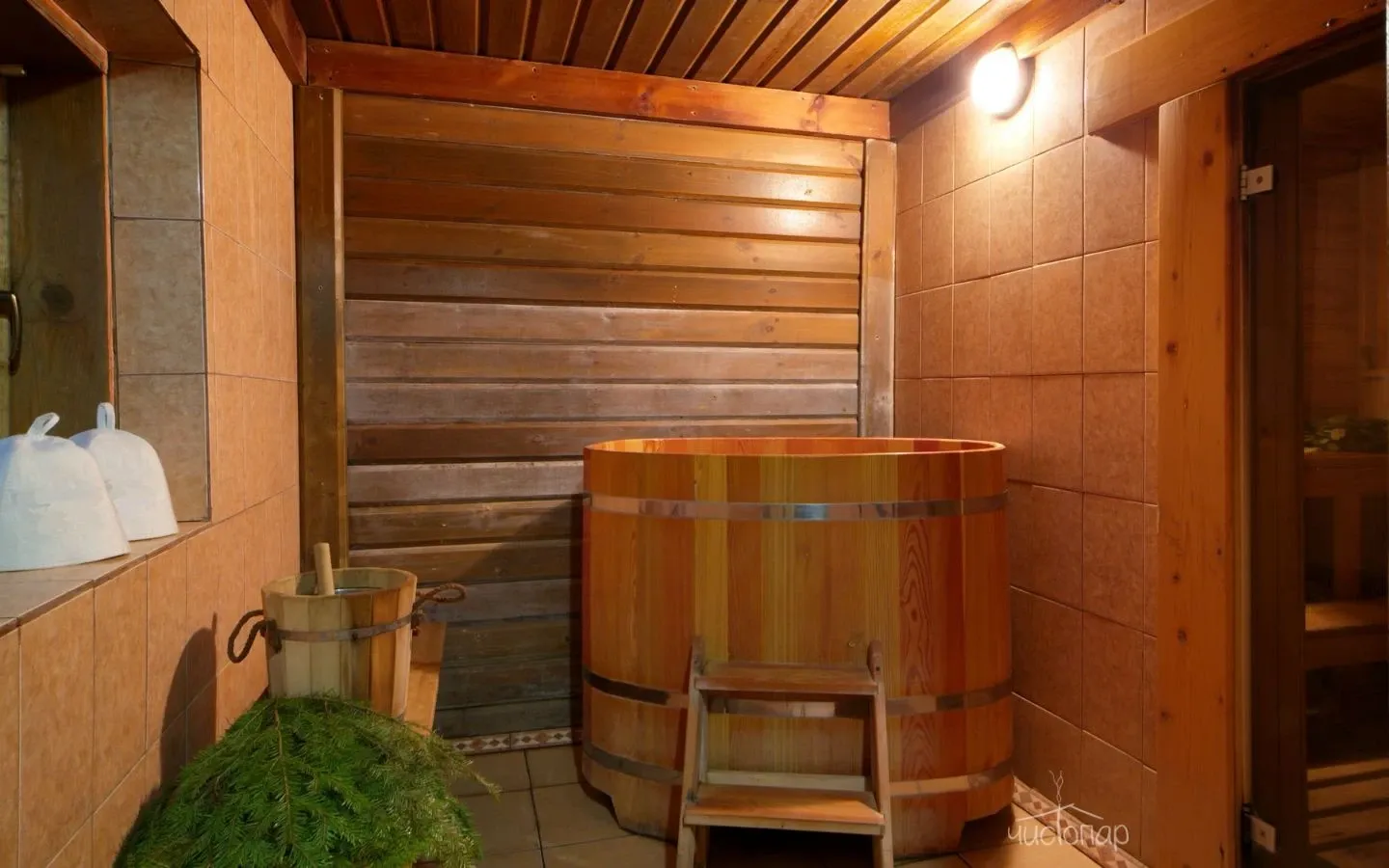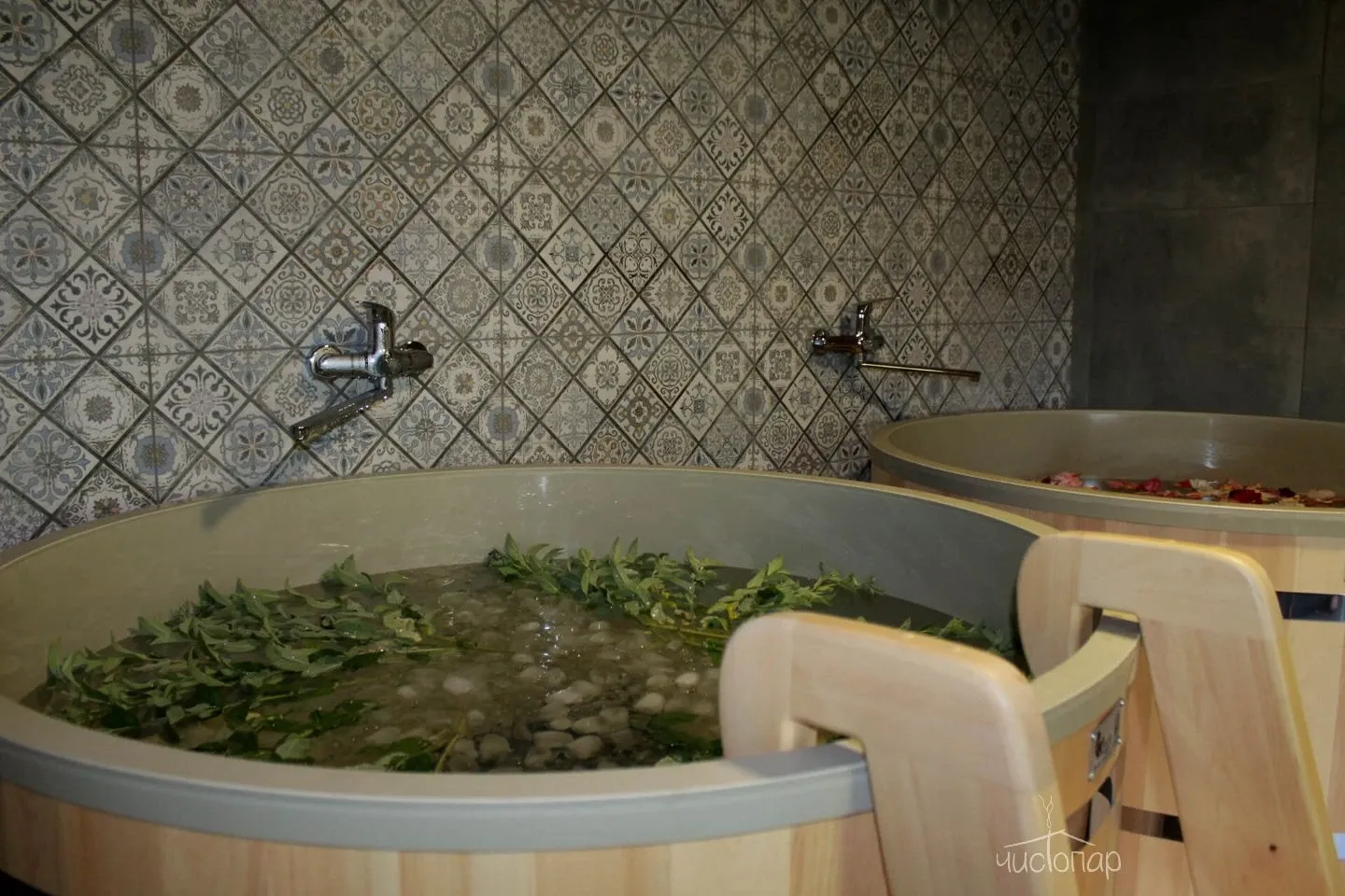 Обязательно стоит побаловать себя посещением банных чанов, представленных в разных вариантах: ромашковый, пивной, молочный и тд.