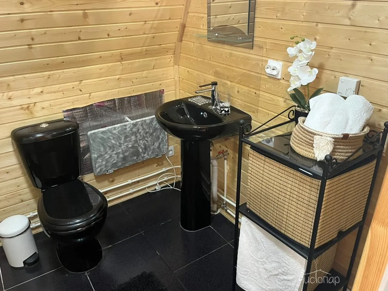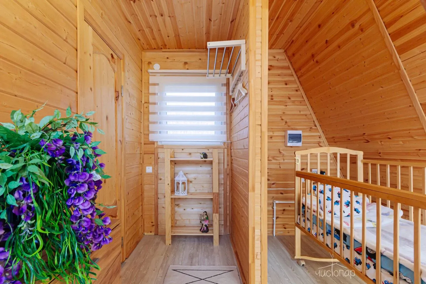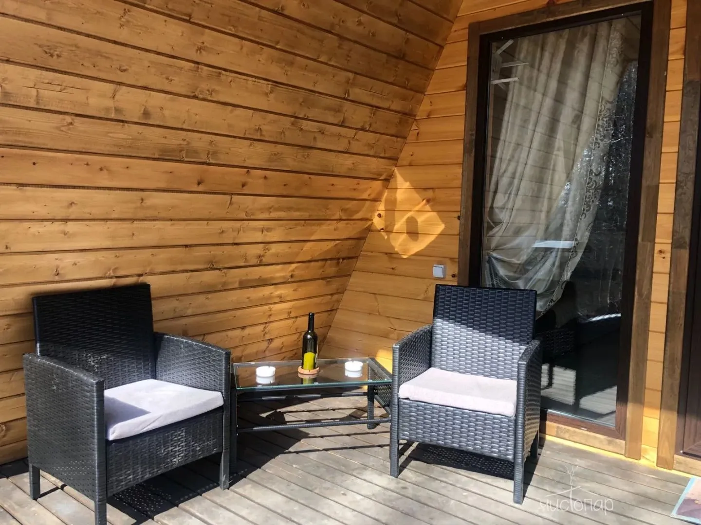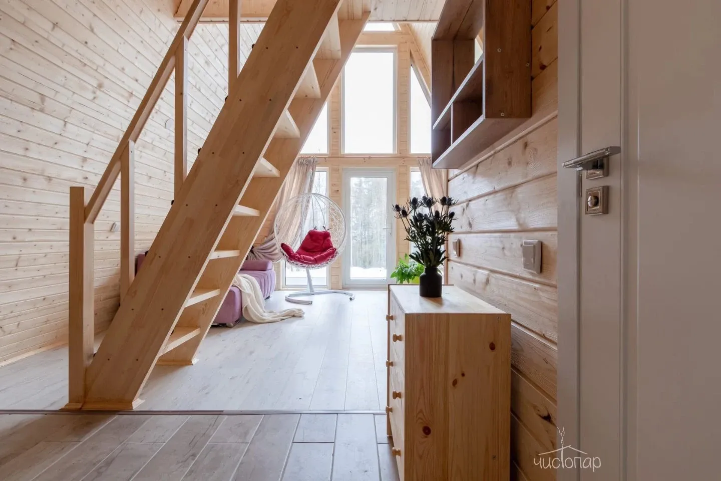Треугольный дизайнерский домик— шале с балконом (вместимость до 10 человек), общая площадь 72 кв.м. Дом для отдыха полностью выполнен из дерева и оборудован для комфортного отдыха. В доме теплые водяные полы с датчиком регулировки температуры, настенный кварцевый обогреватель, вентилятор, установлен бойлер, современный экологический септик.