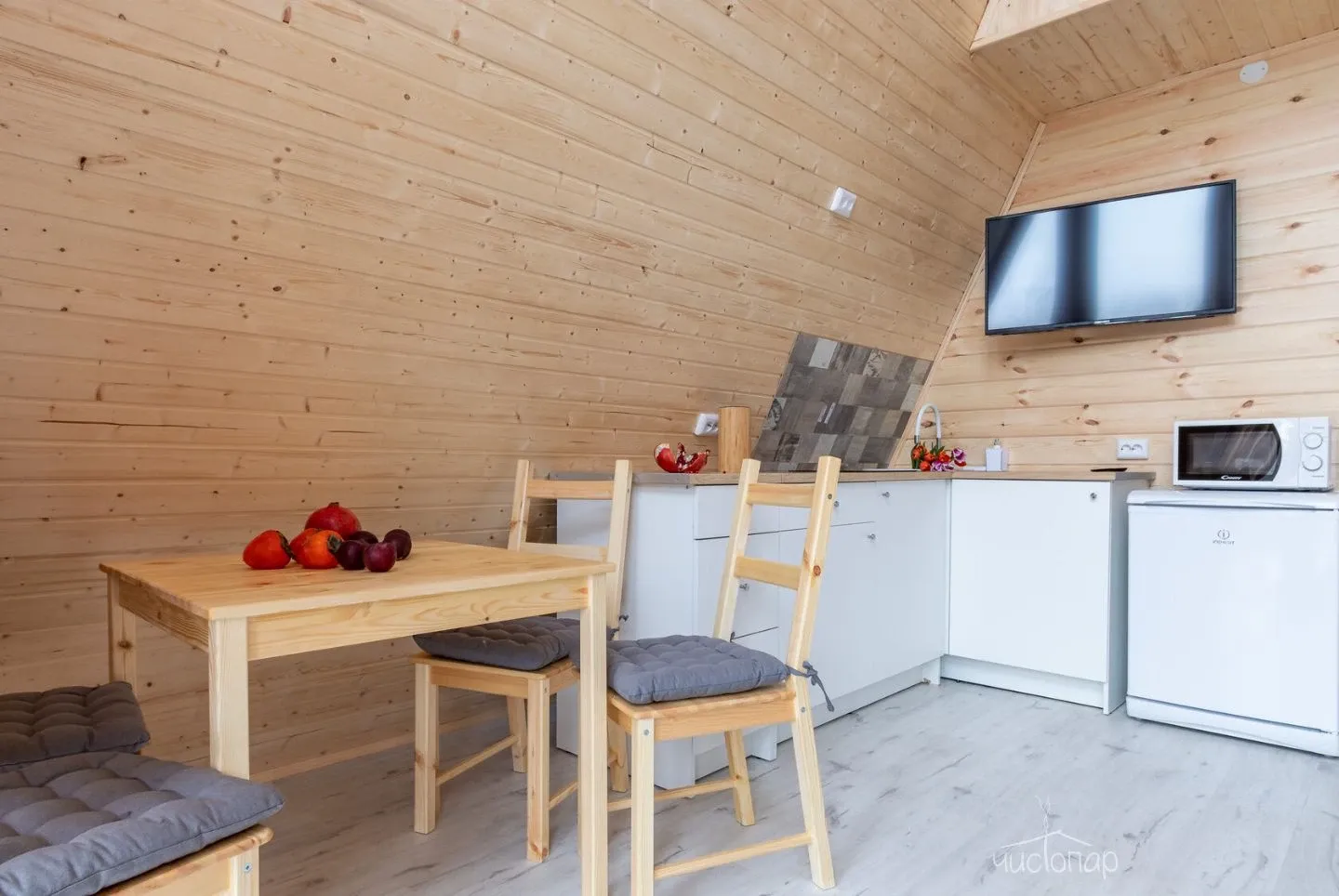 Здесь можно снять роскошный дом-шале со всеми удобствами, отлично подходящий для длительного проживания, шале большое на компанию до 5 и 10 человек, лаконичный маленький домик-шале для любителей романтики и минимализма. Оборудованная бытовой техникой и посудой кухня поможет в приготовлении блюд, рядом с каждым шале находится зона с мангалом.