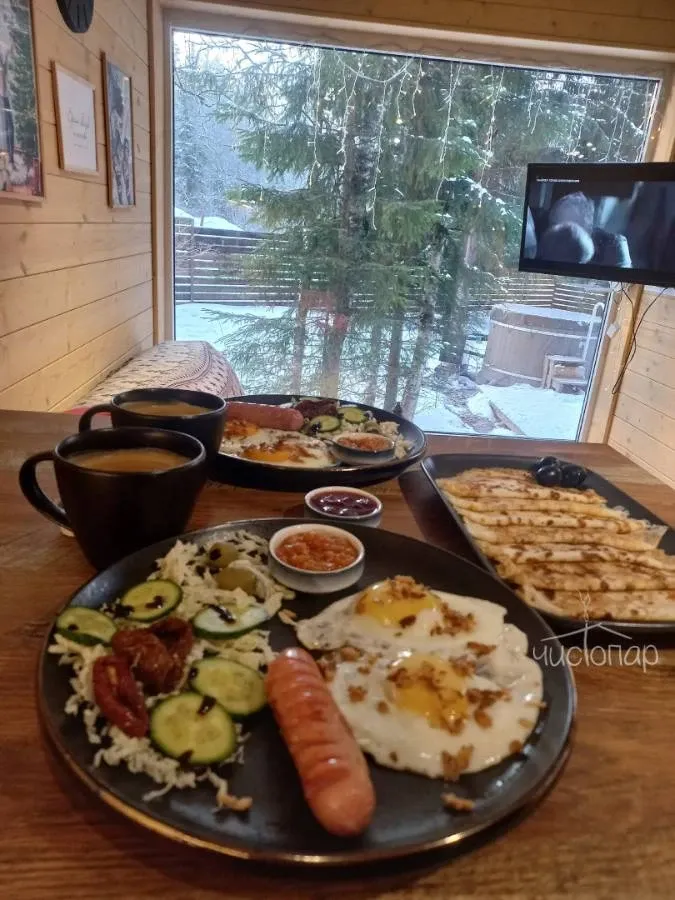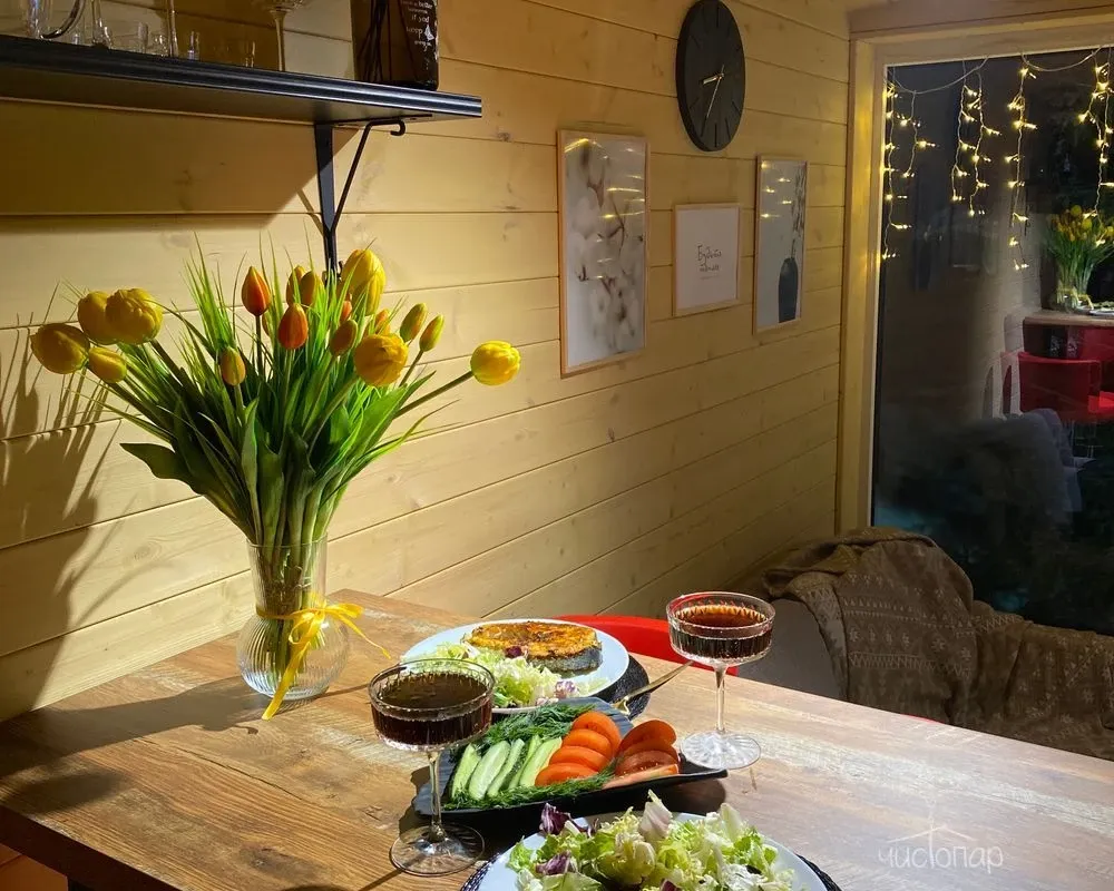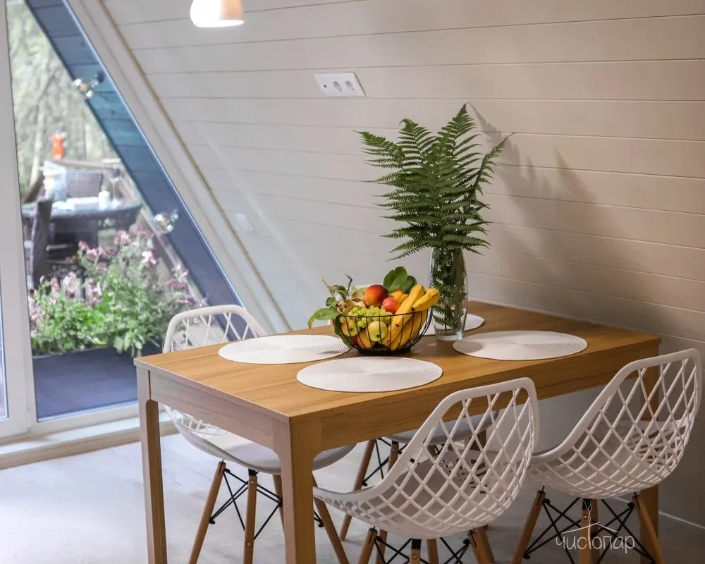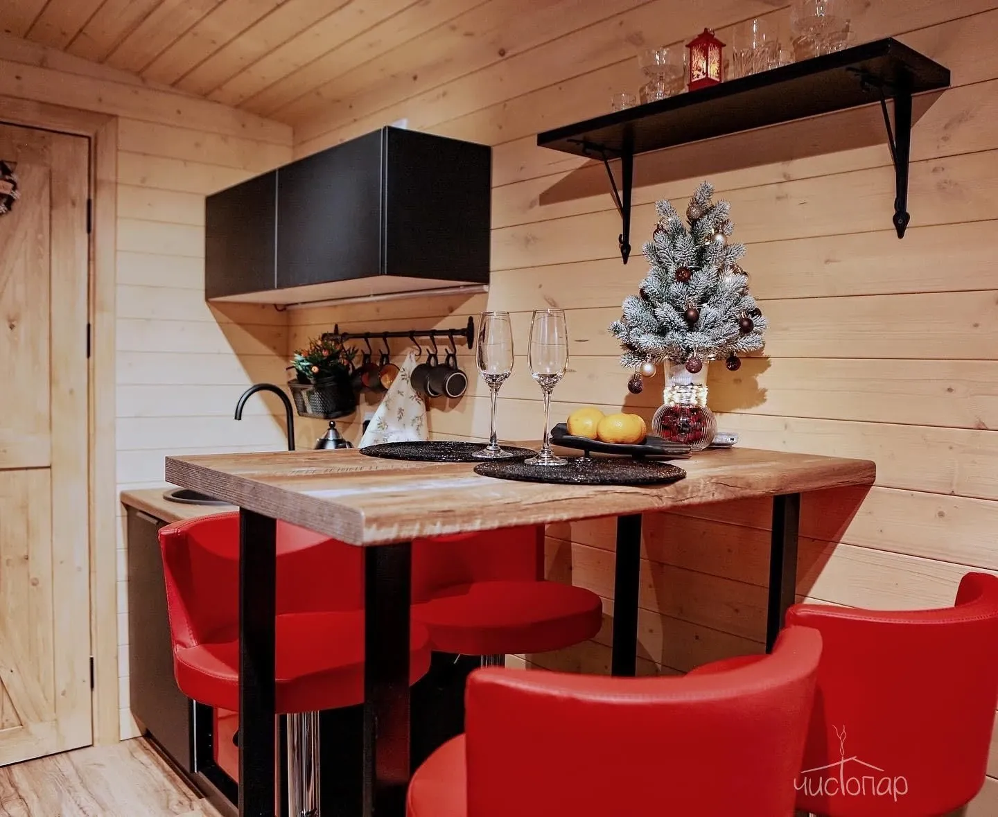 Домики рассчитаны до 6 человек, в них есть все для комфортного отдыха вдвоем или с детьми: кухня, гостиная с диваном, душевые, спальни с панорамными окнами, книги и настольные игры.