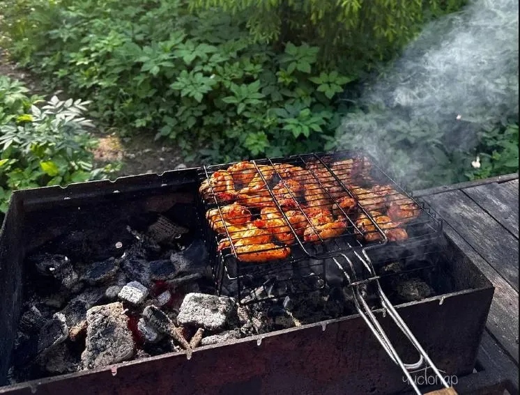 - гриль барбекю для приготовления блюд на углях + решетка, шампуры.