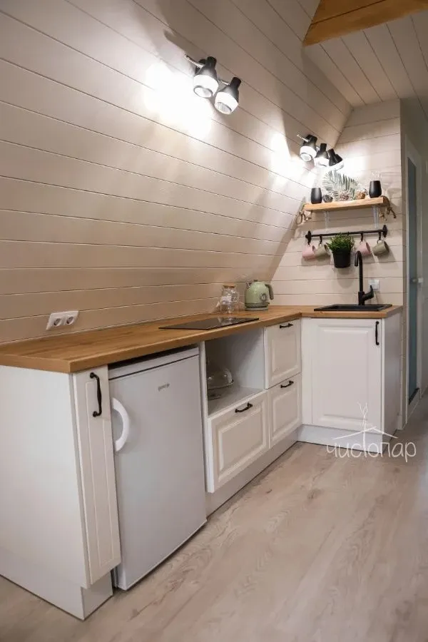 - Мини-холодильник, плита, капсульная кофе-машина, посуда, столовые приборы, посуда для приготовления и сервировки;