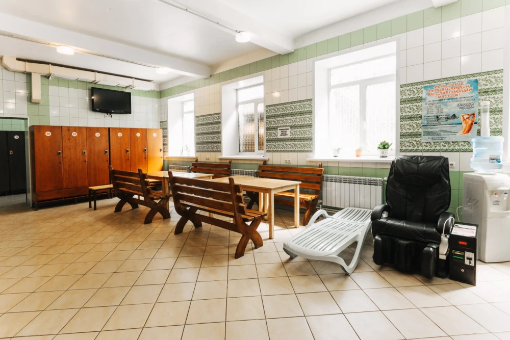 Здесь можно много узнать о банной культуре и традициях у завсегдатаев за чашкой ароматного травяного чая, сыграть партию в шахматы в перерывах между заходами в парную, посмотреть трансляцию матча, лёжа на шезлонге. Массажное кресло отдельно порадует во время отдыха и перемнёт все разогреты косточки.