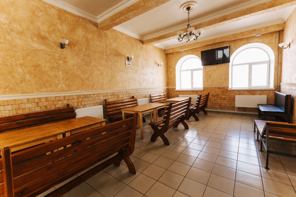КабинетКабинет меблирован и оборудован функциональными шкафчиками и вешалками, а также оснащён ЖК-телевизором. Помещение выполнено в светлых тонах, что создает атмосферу чистоты, уюта и комфорта, что как нельзя лучше подойдет для посиделок в кругу друзей и для проведения различных мероприятий.