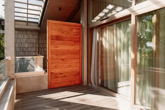 Расположены на самом берегу Финского залива, имеют панорамные окна. Внутри бани есть зона отдыха, парная, санузел, горячая купель снаружи.