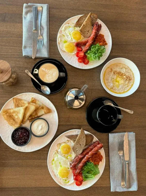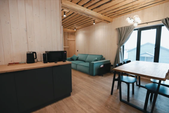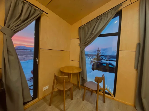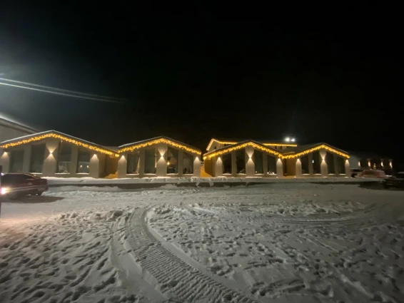 На территории расположен ресторан, в котором гости поселка могут насладиться арктической кухней. К услугам гостей парковка, возможен заказ трансфера через администратора.