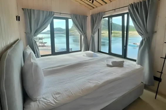 Домик на воде 2 человека (Щучье)Домики на воде, совмещенные с мостком, - это самый необычный вариант проживания в нашем клубе. Вода максимально близко к отдыхающим. Ловить можно прямо с широкого помоста, на котором стоит домик. Площадка для установки снастей большая - 3х3 метра. Беседка с мангалом располагаются рядом на берегу.