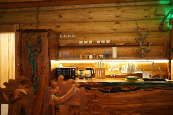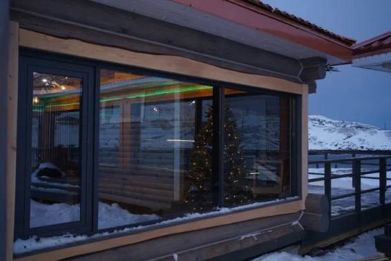 На территории базы отдыха «Сияние Севера» находится русская баня с просторной парилкой, наполненной целебными ароматами дерева и трав. Из бани выход на террасу с видом на море и подогреваемым чаном с морской водой. Также есть уютная комната отдыха с панорамными окнами, где можно насладиться чашкой ароматного травяного чая и наблюдать за величественными просторами Баренцева моря.