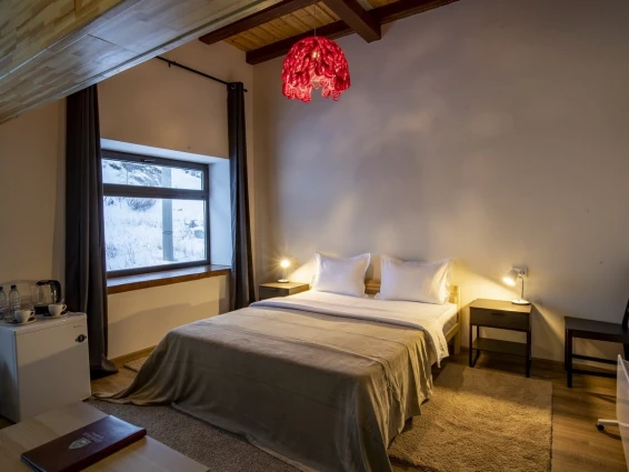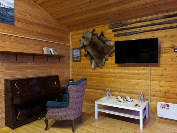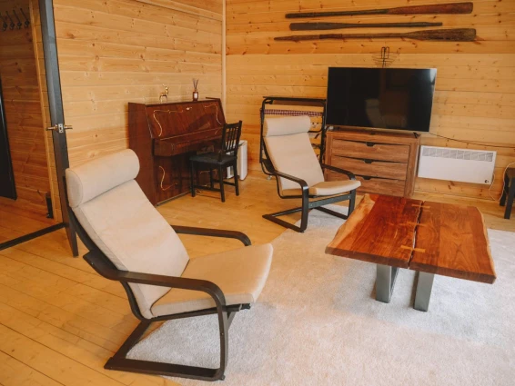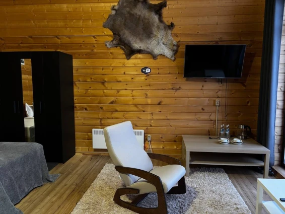 Комфортабельные номера в основном здании и деревянных коттеджах оборудованы всем необходимым для приятного отдыха: отоплением, туалетом с душем, горячей водой, бесплатным WI-FI, телевидением и бытовой техникой.