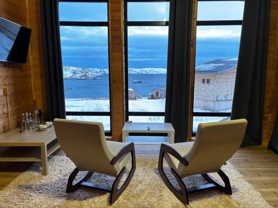 Современный комфортабельный отель CEDAR GRASS “ТЕРИБЕРКА” расположен в с. Териберка Мурманской области на самом берегу Баренцева моря.