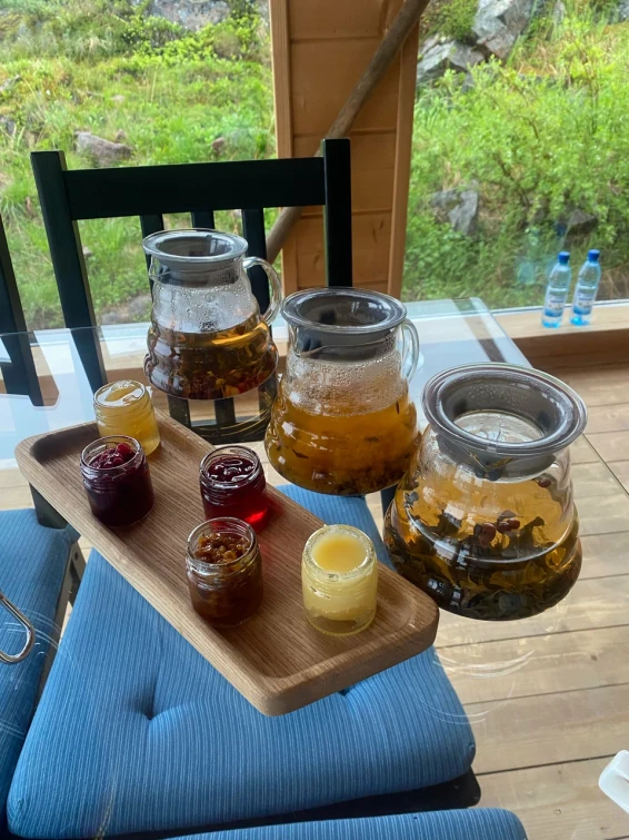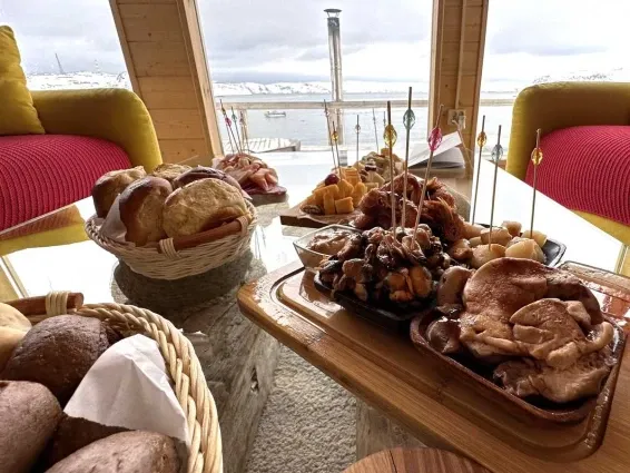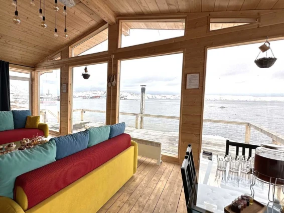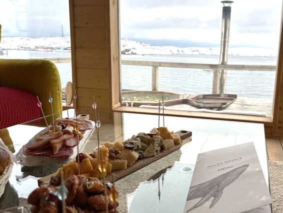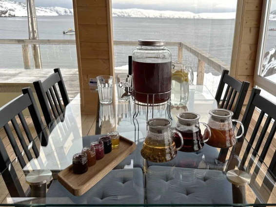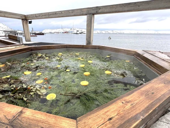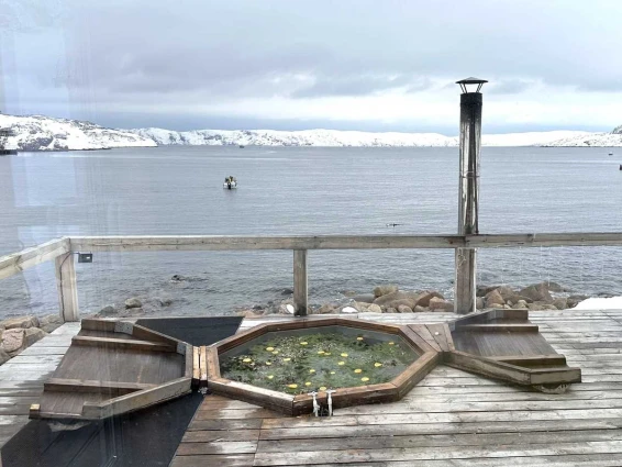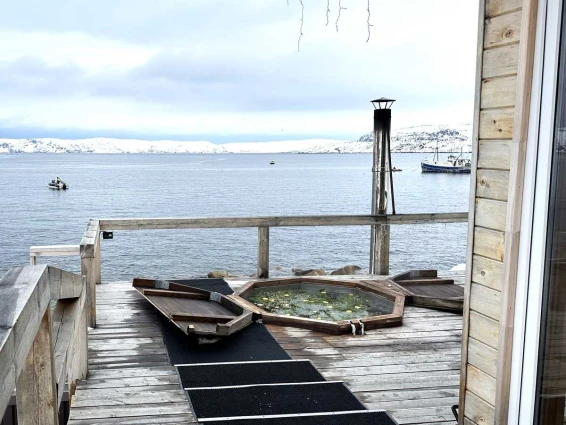 На уличной террасе расположен чан с горячей водой и ароматными травами. Удобный выход к Баренцеву морю.