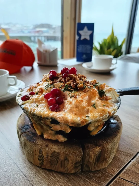 В ресторане с изумительными видами на залив есть возможность отведать умопомрачительные блюда морской и мясной кухни.