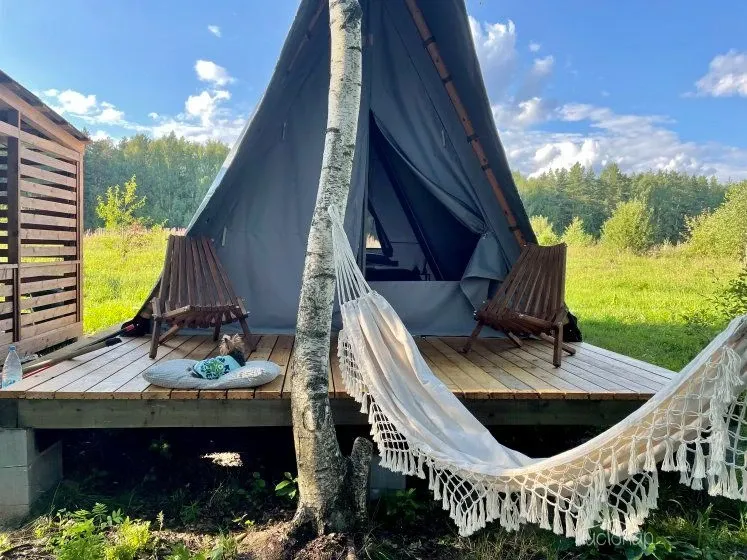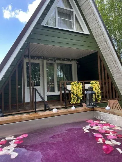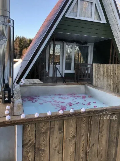 Посуточная аренда уютных домиков с горячей купелью, глэмпов и бани на берегу озера
