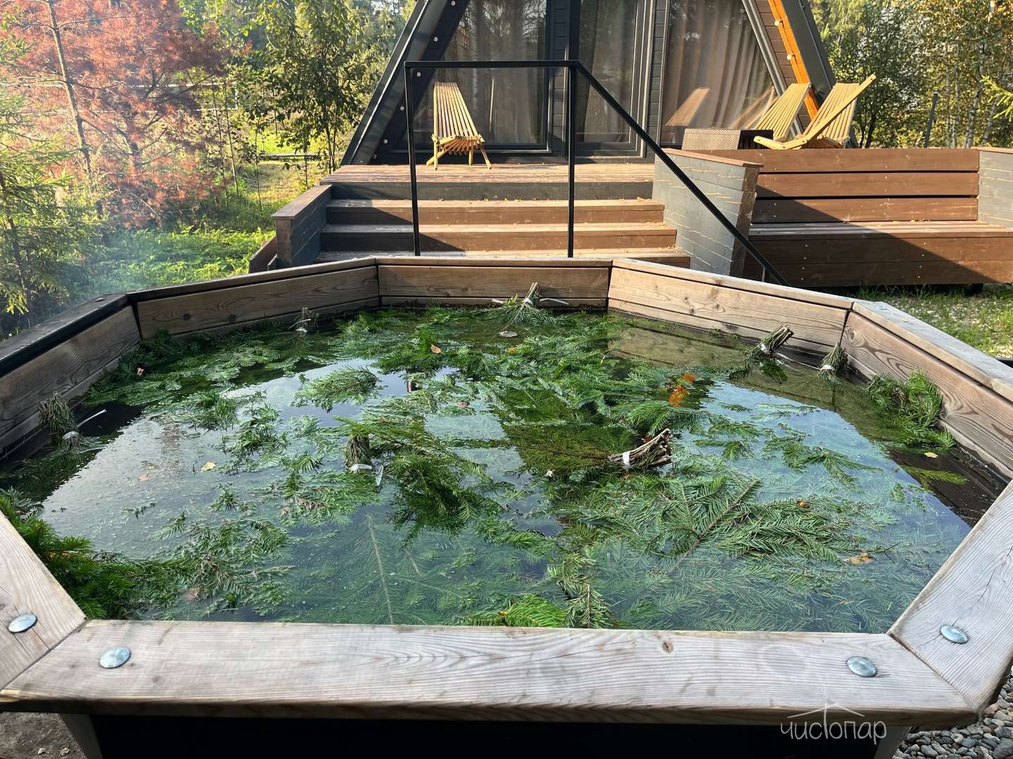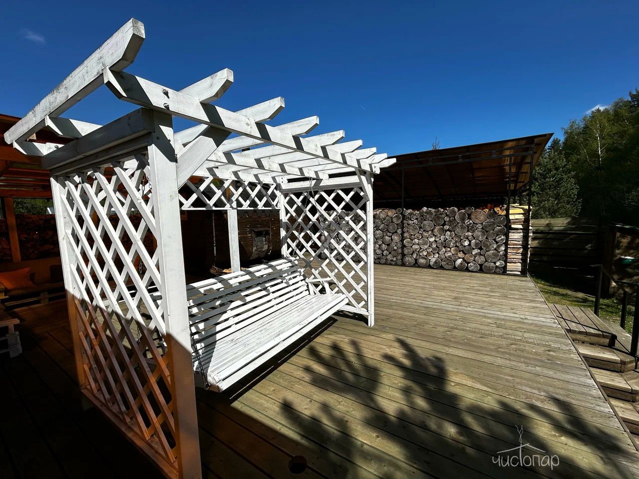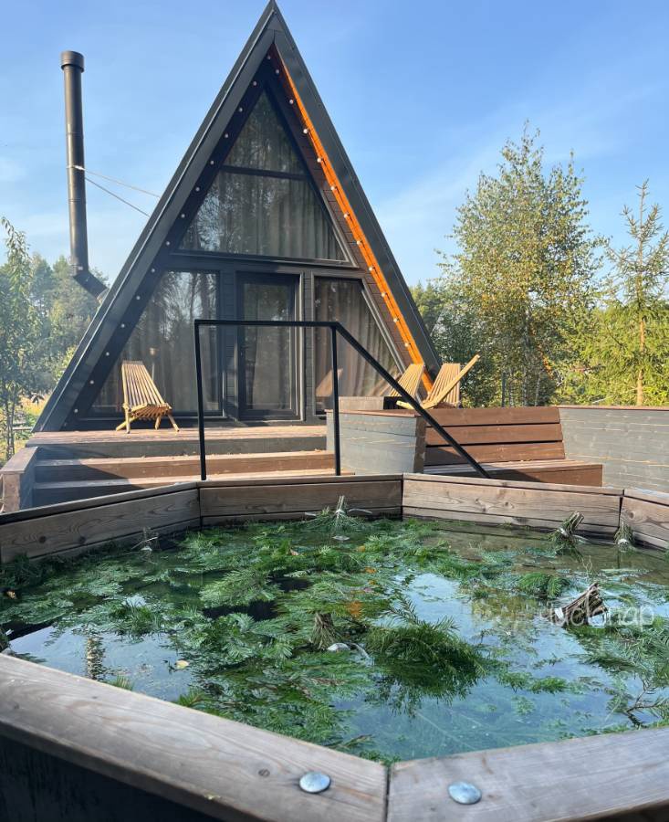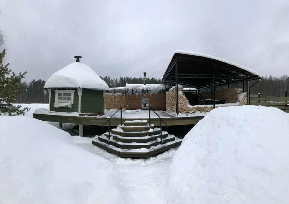 Рядом с домом есть банный чан, который мы греем до 40-42 градусов. В банный чан можно добавить пихтовые веники или заказать романтическое оформление. Чан оплачивается отдельно. Также рядом с домом есть мангал с крышей, решетка для шашлыка и костровая зона.