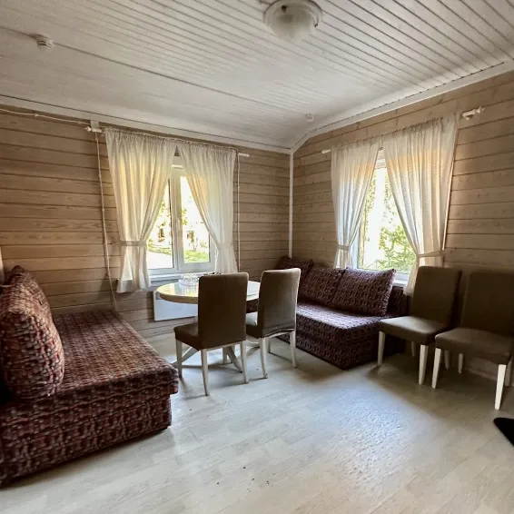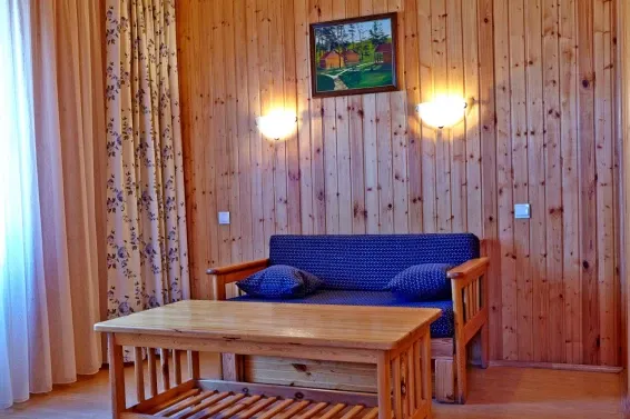Гостиничный фонд включает 40 комфортабельных коттеджей, утопающих в зелени леса и соединенных аккуратными дорожками, создающими атмосферу уединения и спокойствия. Для тех, кто предпочитает более традиционное размещение, предусмотрена современная гостиница с удобными номерами.